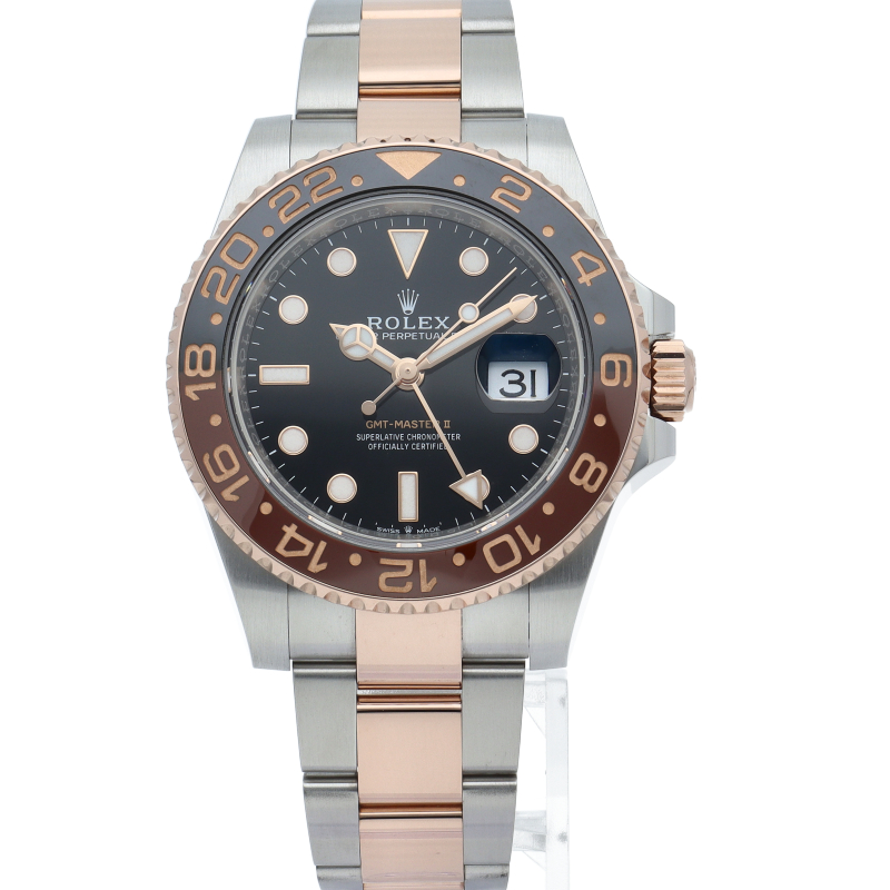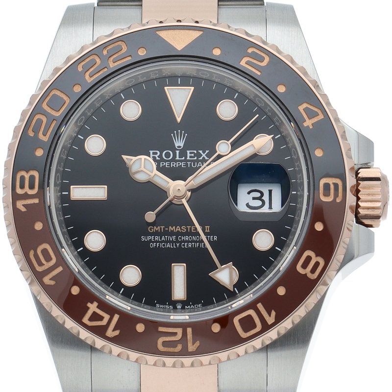 セラクロムベゼルでのGMTマスター2。ロレックスの最新ムーブメント「Cal.3285」を搭載しており、エネルギー効率が最適化されたクロナジー脱進機、テンプを衝撃から守る為の耐震装置パラフレックス ショック・アブソーバそして70時間ものロングパワーリザーブとロレックスの最新技術を駆使したムーブメントになっています。