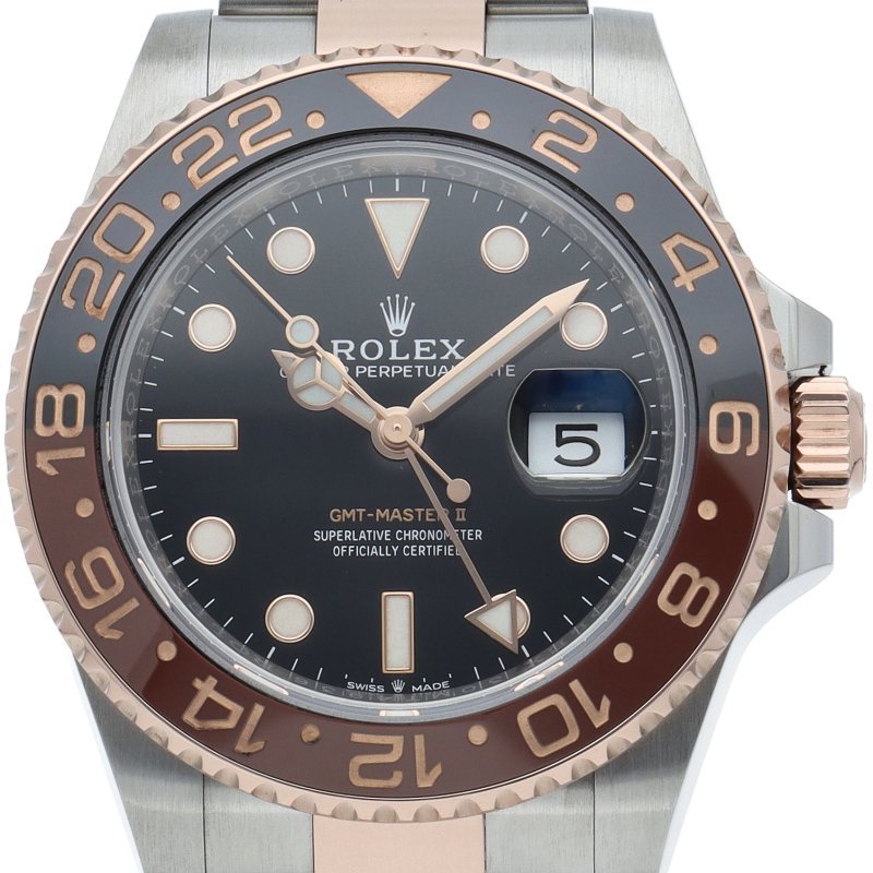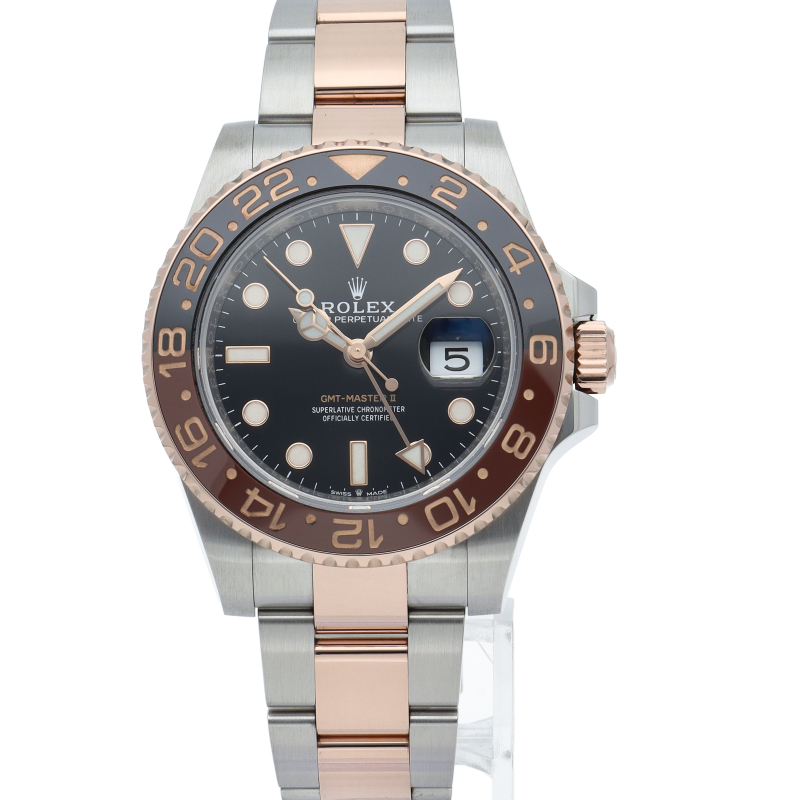 セラクロムベゼルでのGMTマスター2。ロレックスの最新ムーブメント「Cal.3285」を搭載しており、エネルギー効率が最適化されたクロナジー脱進機、テンプを衝撃から守る為の耐震装置パラフレックス ショック・アブソーバそして70時間ものロングパワーリザーブとロレックスの最新技術を駆使したムーブメントになっています。