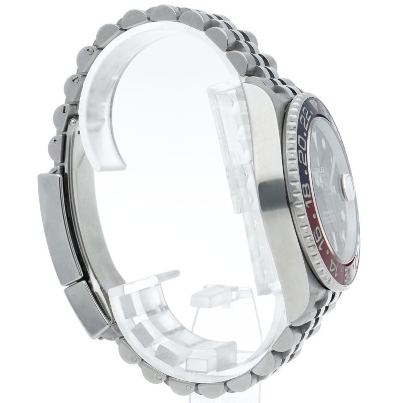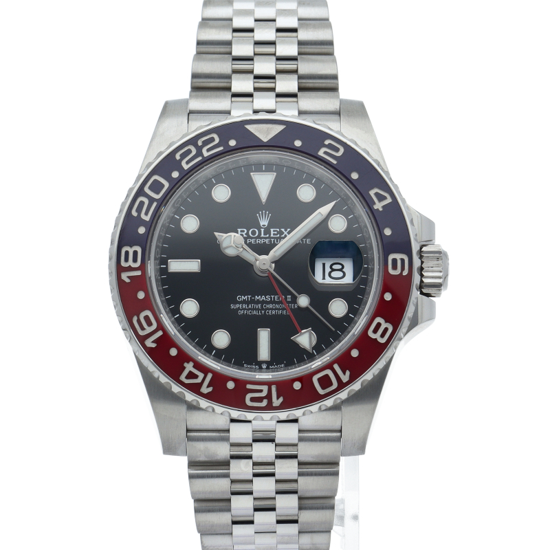 ロレックス人気モデル「GMTマスター2」のモデルチェンジした新型モデルです。セラミックベゼルにブレスやバックルも新しくなり高級感が更に増した1本です。