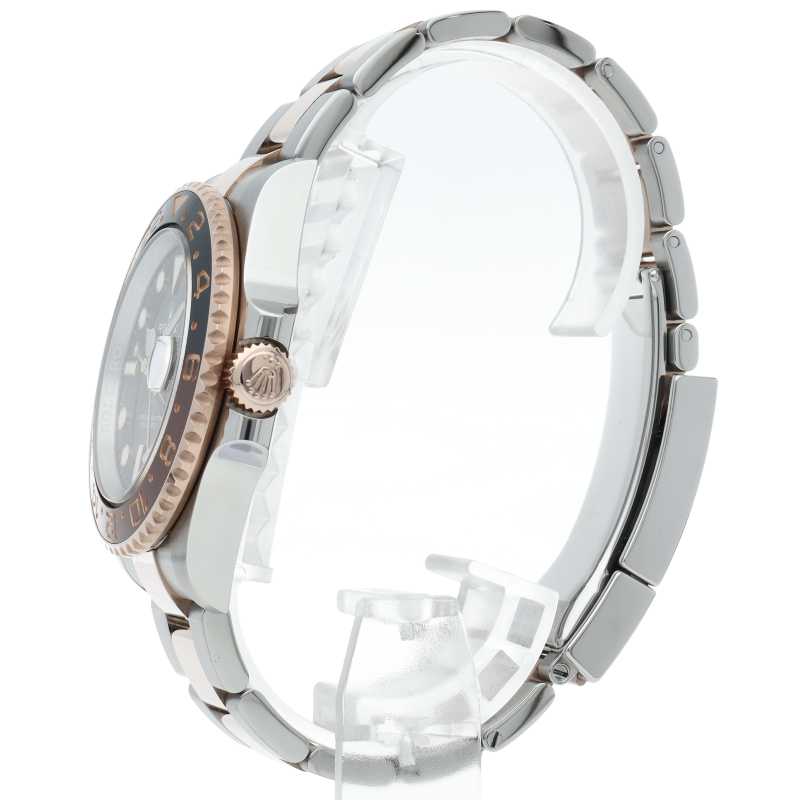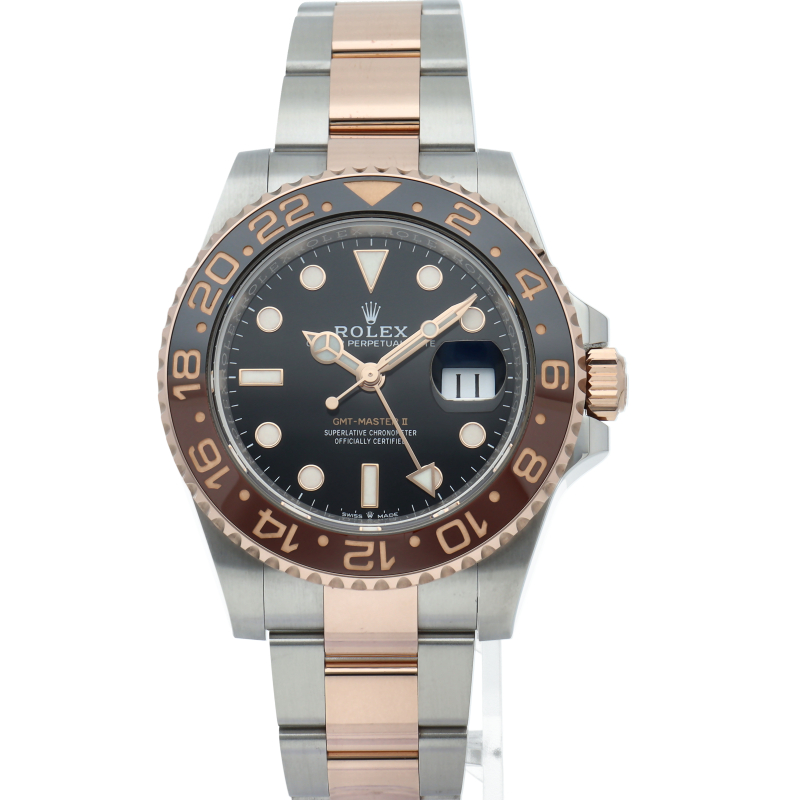 セラクロムベゼルでのGMTマスター2。ロレックスの最新ムーブメント「Cal.3285」を搭載しており、エネルギー効率が最適化されたクロナジー脱進機、テンプを衝撃から守る為の耐震装置パラフレックス ショック・アブソーバそして70時間ものロングパワーリザーブとロレックスの最新技術を駆使したムーブメントになっています。