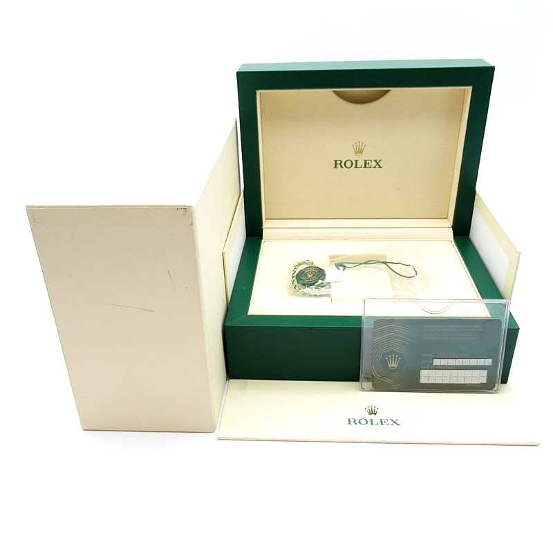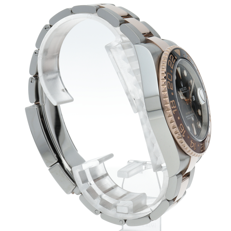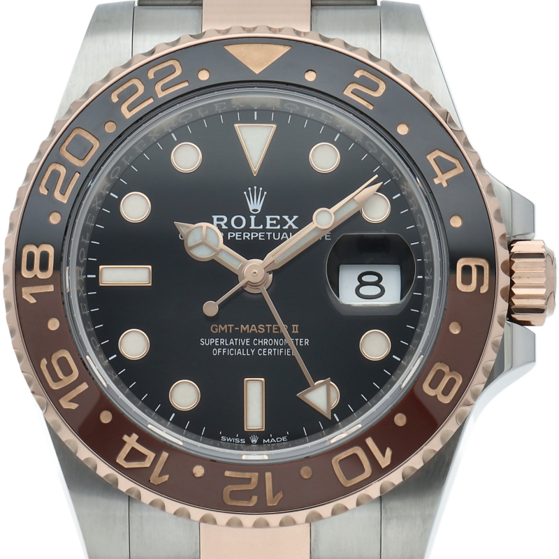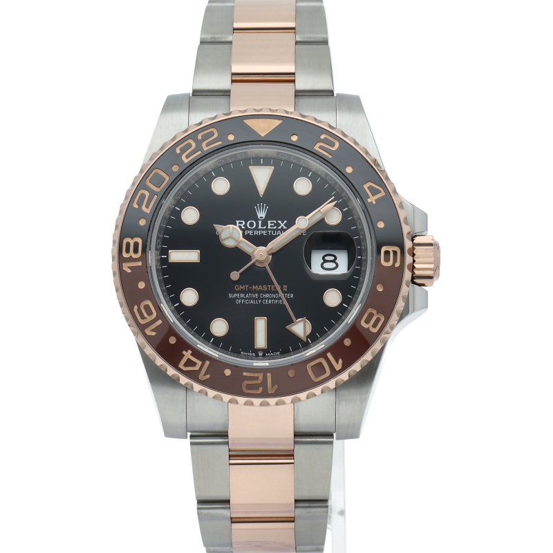 セラクロムベゼルでのGMTマスター2。ロレックスの最新ムーブメント「Cal.3285」を搭載しており、エネルギー効率が最適化されたクロナジー脱進機、テンプを衝撃から守る為の耐震装置パラフレックス ショック・アブソーバそして70時間ものロングパワーリザーブとロレックスの最新技術を駆使したムーブメントになっています。
