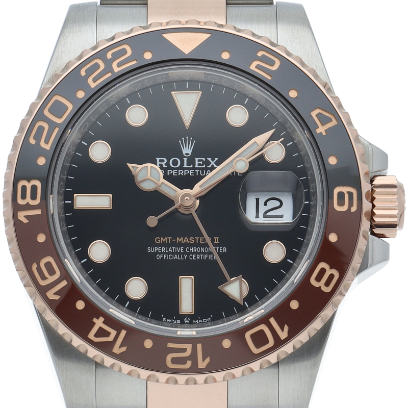 セラクロムベゼルでのGMTマスター2。ロレックスの最新ムーブメント「Cal.3285」を搭載しており、エネルギー効率が最適化されたクロナジー脱進機、テンプを衝撃から守る為の耐震装置パラフレックス ショック・アブソーバそして70時間ものロングパワーリザーブとロレックスの最新技術を駆使したムーブメントになっています。