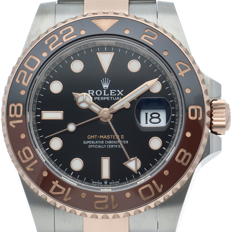 セラクロムベゼルでのGMTマスター2。ロレックスの最新ムーブメント「Cal.3285」を搭載しており、エネルギー効率が最適化されたクロナジー脱進機、テンプを衝撃から守る為の耐震装置パラフレックス ショック・アブソーバそして70時間ものロングパワーリザーブとロレックスの最新技術を駆使したムーブメントになっています。