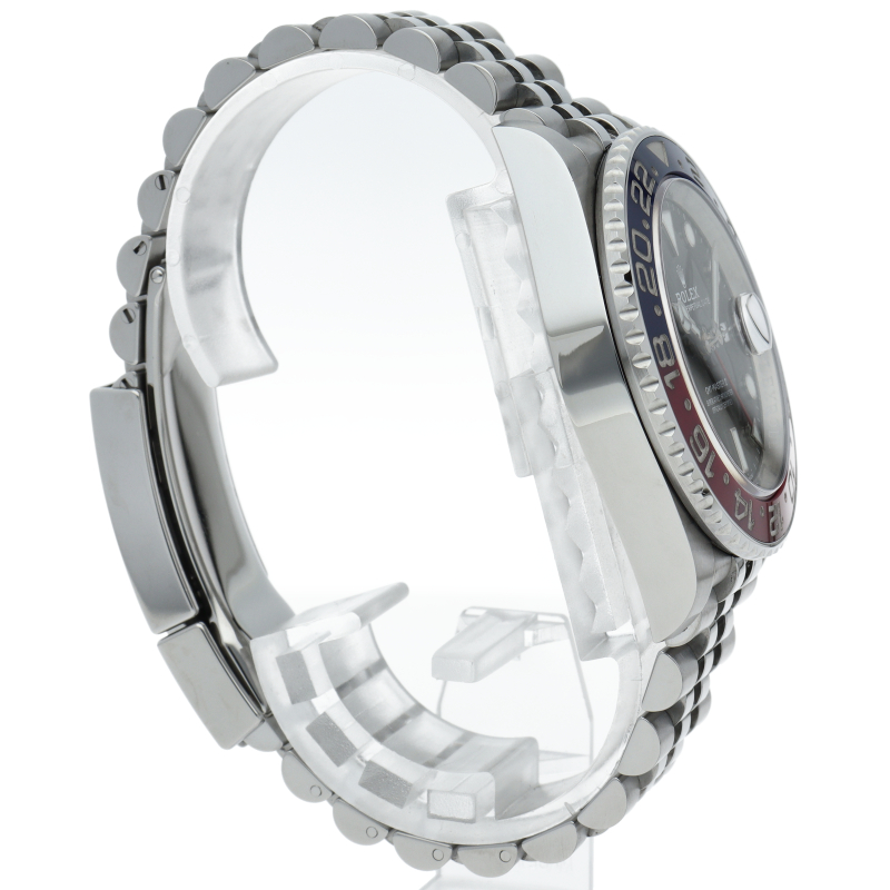 ロレックス人気モデル「GMTマスター2」のモデルチェンジした新型モデルです。セラミックベゼルにブレスやバックルも新しくなり高級感が更に増した1本です。