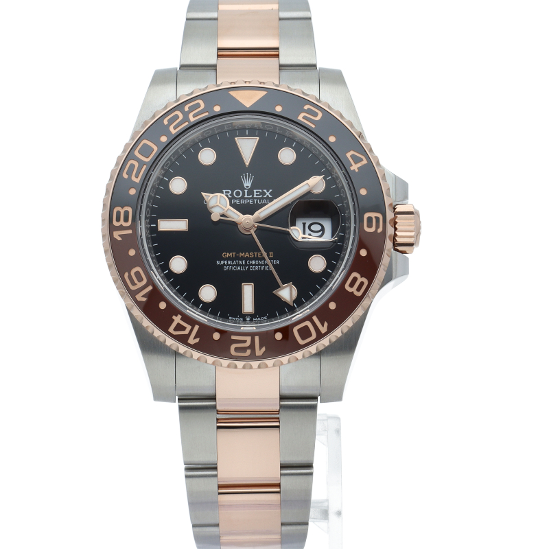 セラクロムベゼルでのGMTマスター2。ロレックスの最新ムーブメント「Cal.3285」を搭載しており、エネルギー効率が最適化されたクロナジー脱進機、テンプを衝撃から守る為の耐震装置パラフレックス ショック・アブソーバそして70時間ものロングパワーリザーブとロレックスの最新技術を駆使したムーブメントになっています。