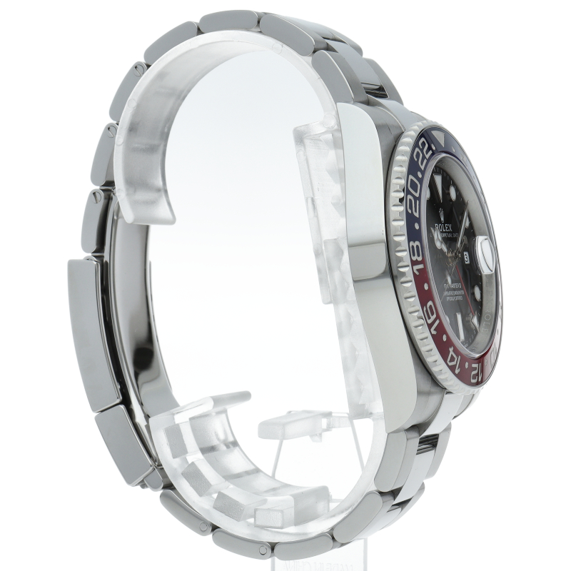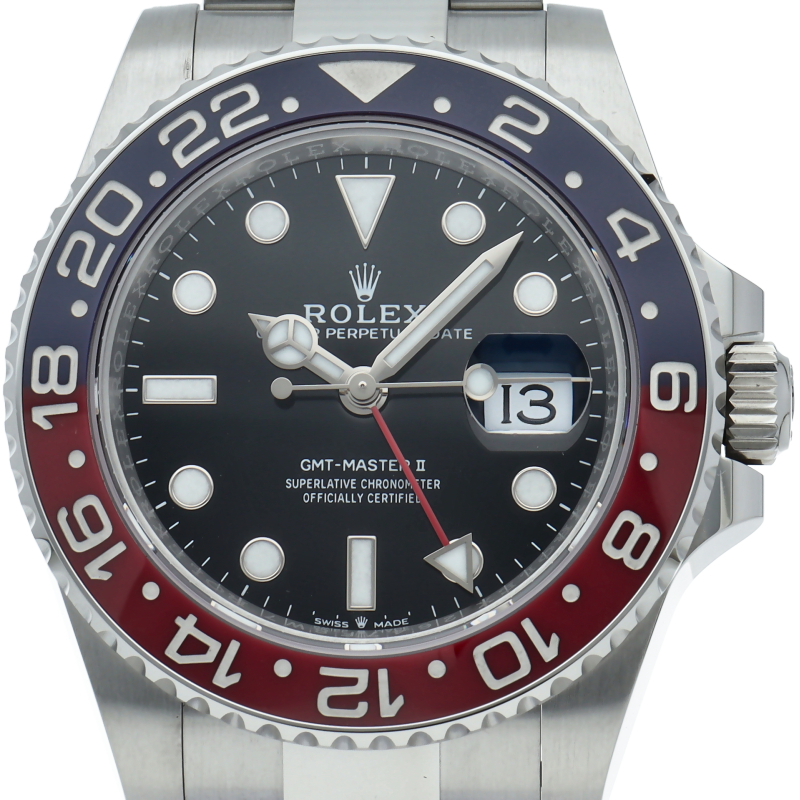ロレックス人気モデル「GMTマスター2」のモデルチェンジした新型モデルです。セラミックベゼルにブレスやバックルも新しくなり高級感が更に増した1本です。