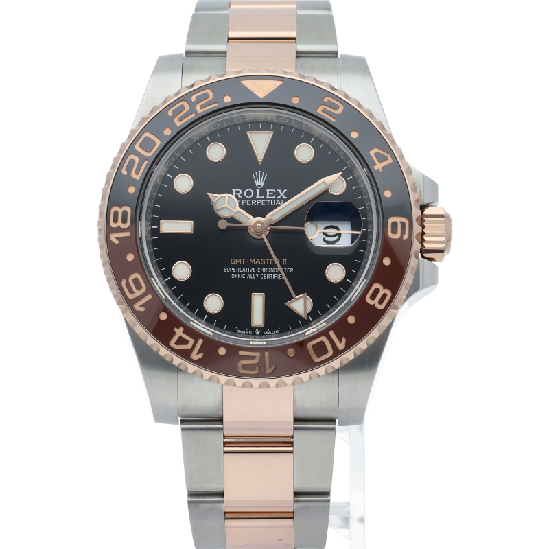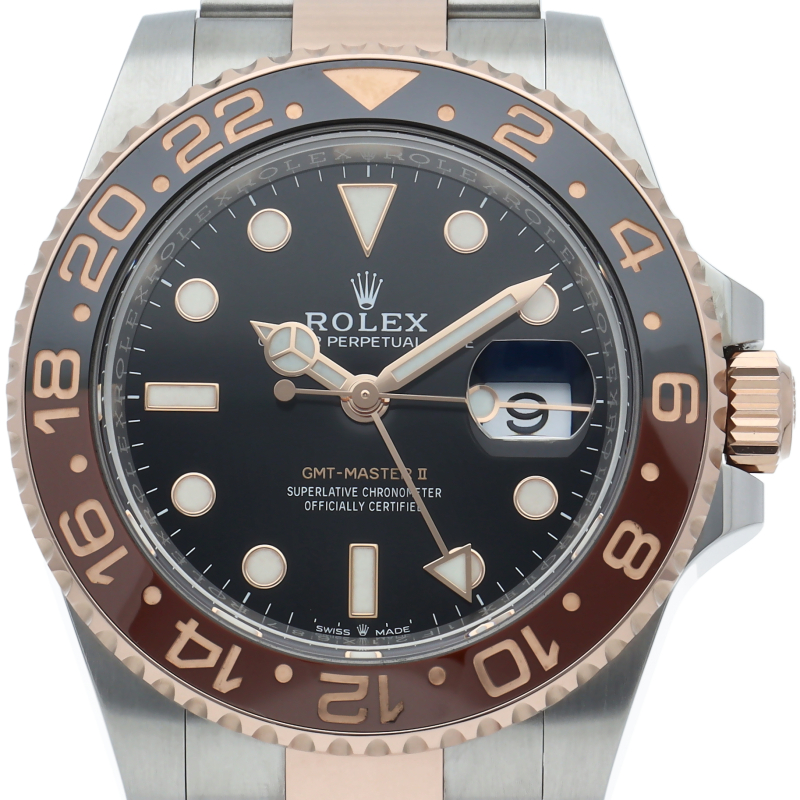 セラクロムベゼルでのGMTマスター2。ロレックスの最新ムーブメント「Cal.3285」を搭載しており、エネルギー効率が最適化されたクロナジー脱進機、テンプを衝撃から守る為の耐震装置パラフレックス ショック・アブソーバそして70時間ものロングパワーリザーブとロレックスの最新技術を駆使したムーブメントになっています。