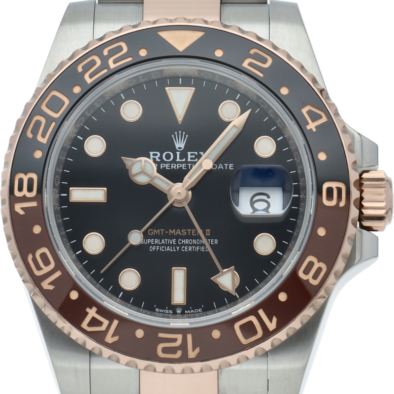 セラクロムベゼルでのGMTマスター2。ロレックスの最新ムーブメント「Cal.3285」を搭載しており、エネルギー効率が最適化されたクロナジー脱進機、テンプを衝撃から守る為の耐震装置パラフレックス ショック・アブソーバそして70時間ものロングパワーリザーブとロレックスの最新技術を駆使したムーブメントになっています。