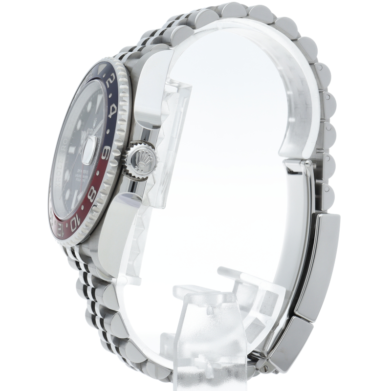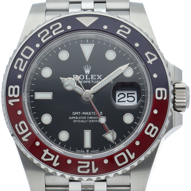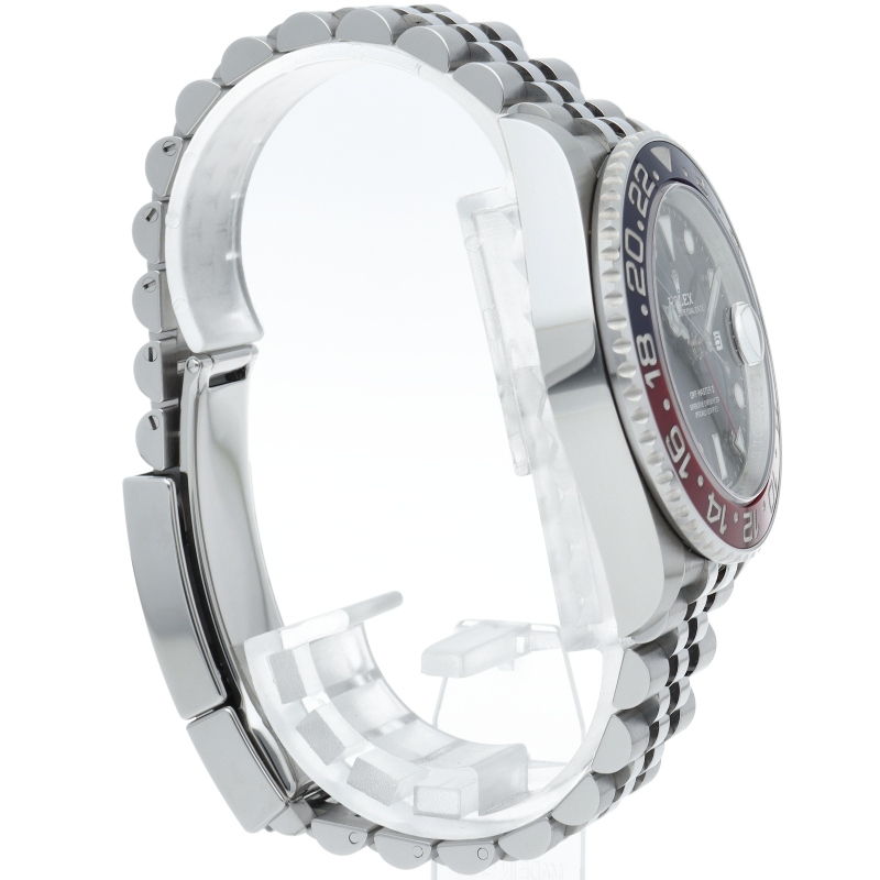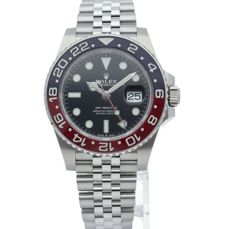 ロレックス人気モデル「GMTマスター2」のモデルチェンジした新型モデルです。セラミックベゼルにブレスやバックルも新しくなり高級感が更に増した1本です。