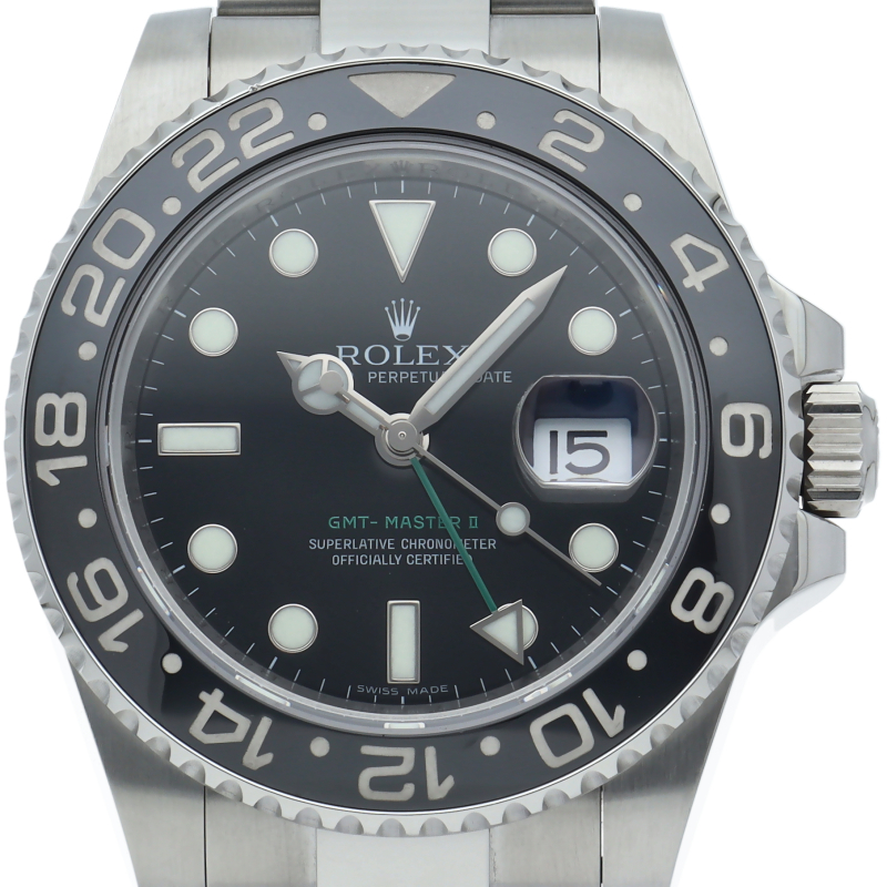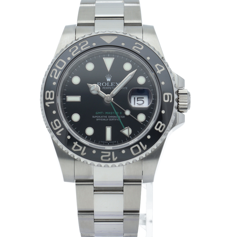 ロレックス人気モデル「GMTマスター2」。2019年に生産が終了となったセラミックの黒ベゼルは実用性はもちろん、これからの相場が楽しみな1本です。