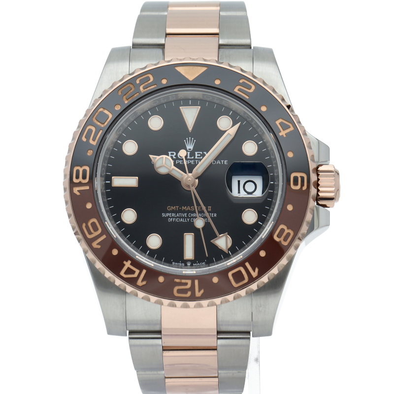 セラクロムベゼルでのGMTマスター2。ロレックスの最新ムーブメント「Cal.3285」を搭載しており、エネルギー効率が最適化されたクロナジー脱進機、テンプを衝撃から守る為の耐震装置パラフレックス ショック・アブソーバそして70時間ものロングパワーリザーブとロレックスの最新技術を駆使したムーブメントになっています。