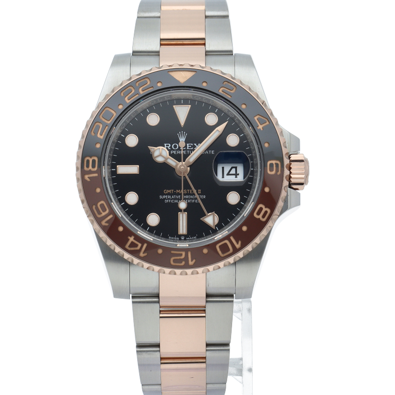 セラクロムベゼルでのGMTマスター2。ロレックスの最新ムーブメント「Cal.3285」を搭載しており、エネルギー効率が最適化されたクロナジー脱進機、テンプを衝撃から守る為の耐震装置パラフレックス ショック・アブソーバそして70時間ものロングパワーリザーブとロレックスの最新技術を駆使したムーブメントになっています。