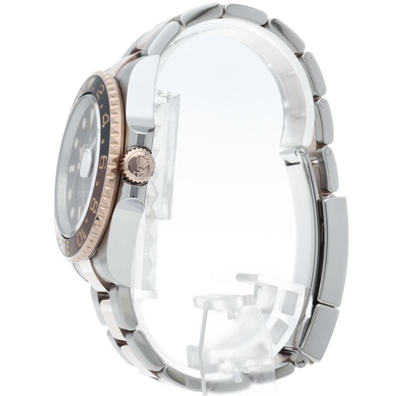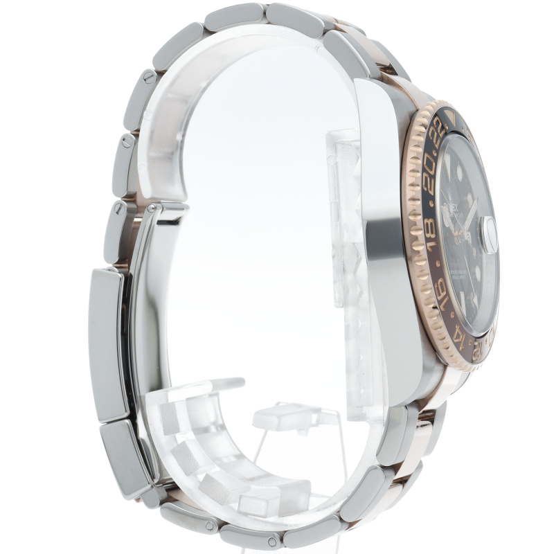 セラクロムベゼルでのGMTマスター2。ロレックスの最新ムーブメント「Cal.3285」を搭載しており、エネルギー効率が最適化されたクロナジー脱進機、テンプを衝撃から守る為の耐震装置パラフレックス ショック・アブソーバそして70時間ものロングパワーリザーブとロレックスの最新技術を駆使したムーブメントになっています。
