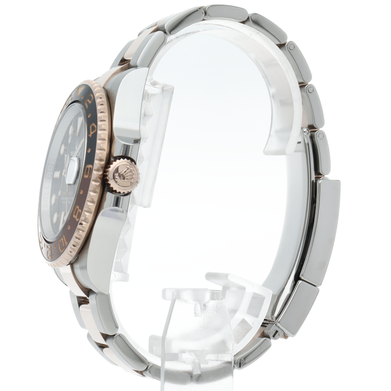 セラクロムベゼルでのGMTマスター2。ロレックスの最新ムーブメント「Cal.3285」を搭載しており、エネルギー効率が最適化されたクロナジー脱進機、テンプを衝撃から守る為の耐震装置パラフレックス ショック・アブソーバそして70時間ものロングパワーリザーブとロレックスの最新技術を駆使したムーブメントになっています。