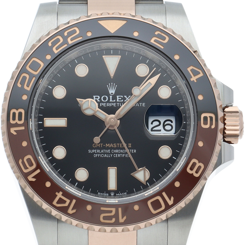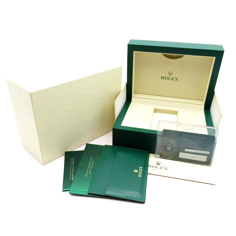 セラクロムベゼルでのGMTマスター2。ロレックスの最新ムーブメント「Cal.3285」を搭載しており、エネルギー効率が最適化されたクロナジー脱進機、テンプを衝撃から守る為の耐震装置パラフレックス ショック・アブソーバそして70時間ものロングパワーリザーブとロレックスの最新技術を駆使したムーブメントになっています。
