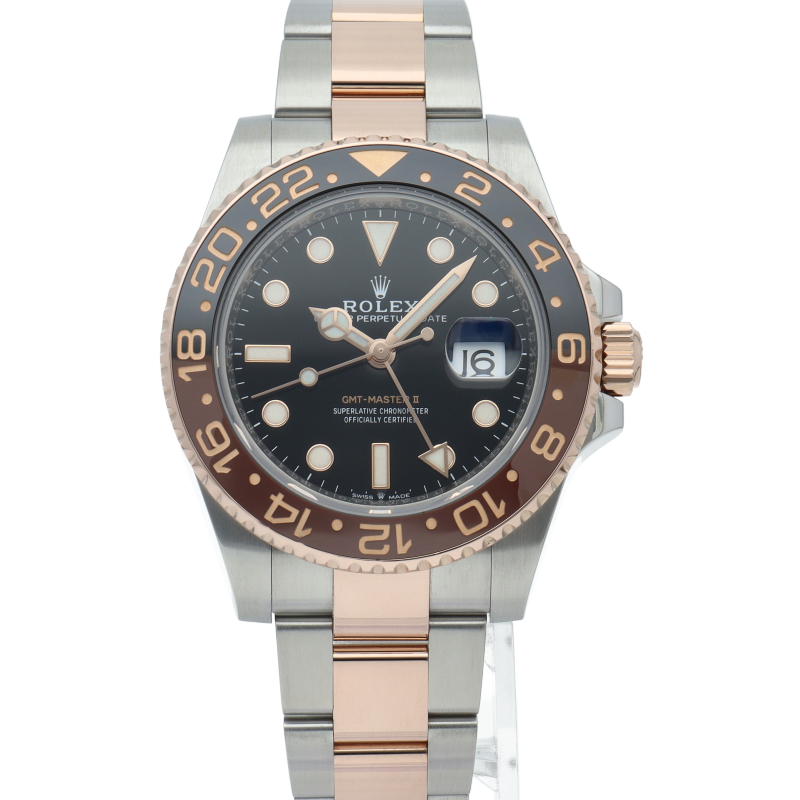 セラクロムベゼルでのGMTマスター2。ロレックスの最新ムーブメント「Cal.3285」を搭載しており、エネルギー効率が最適化されたクロナジー脱進機、テンプを衝撃から守る為の耐震装置パラフレックス ショック・アブソーバそして70時間ものロングパワーリザーブとロレックスの最新技術を駆使したムーブメントになっています。