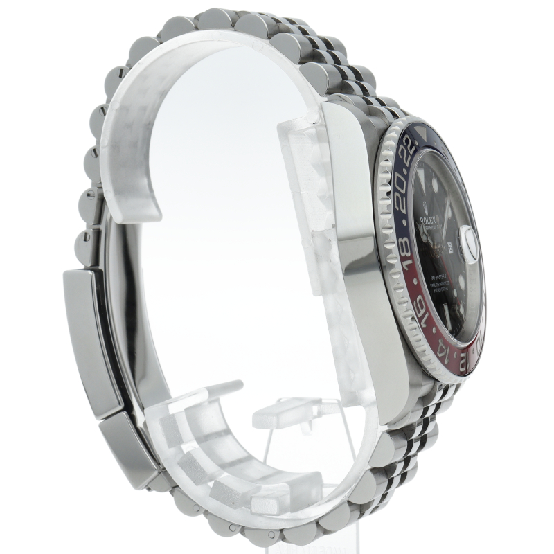 ロレックス人気モデル「GMTマスター2」のモデルチェンジした新型モデルです。セラミックベゼルにブレスやバックルも新しくなり高級感が更に増した1本です。
