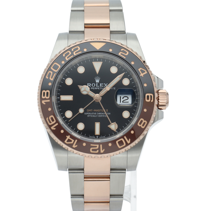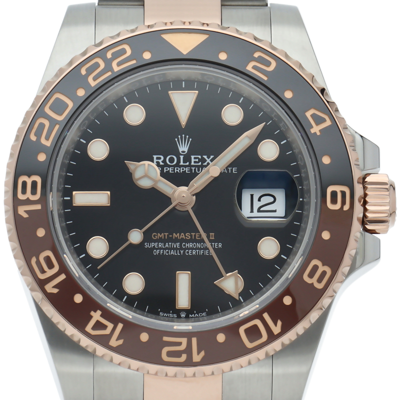 セラクロムベゼルでのGMTマスター2。ロレックスの最新ムーブメント「Cal.3285」を搭載しており、エネルギー効率が最適化されたクロナジー脱進機、テンプを衝撃から守る為の耐震装置パラフレックス ショック・アブソーバそして70時間ものロングパワーリザーブとロレックスの最新技術を駆使したムーブメントになっています。
