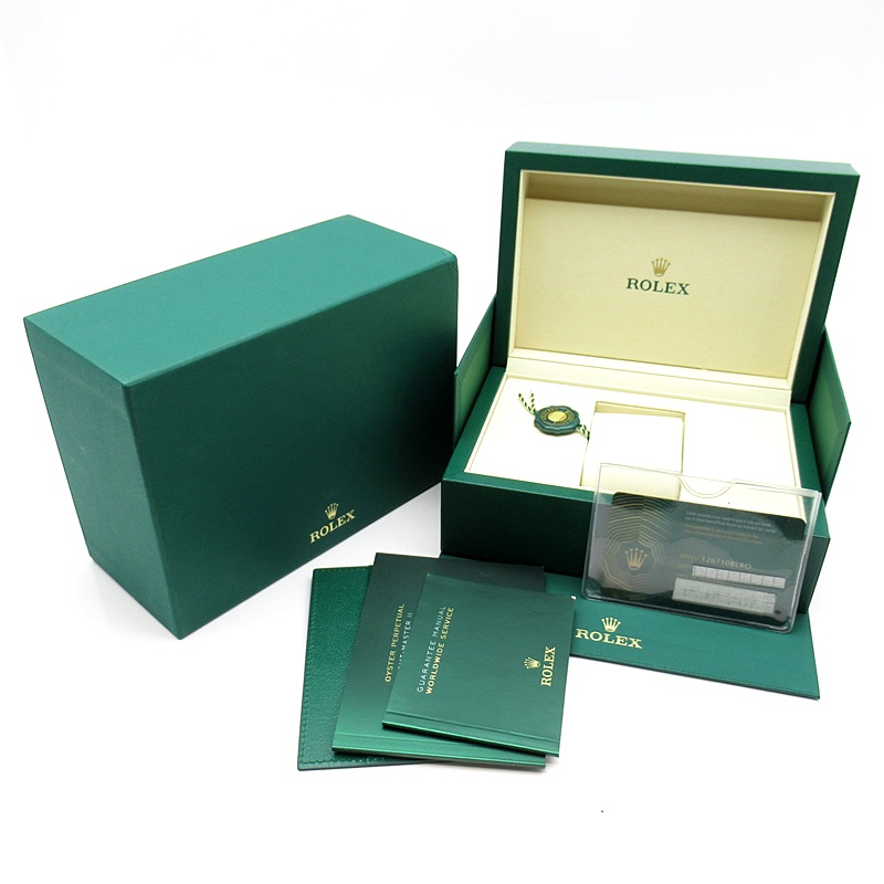 ロレックス人気モデル「GMTマスター2」のモデルチェンジした新型モデルです。セラミックベゼルにブレスやバックルも新しくなり高級感が更に増した1本です。