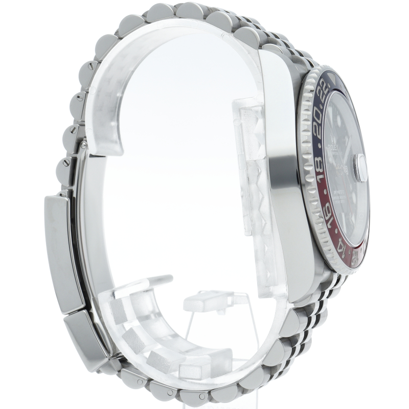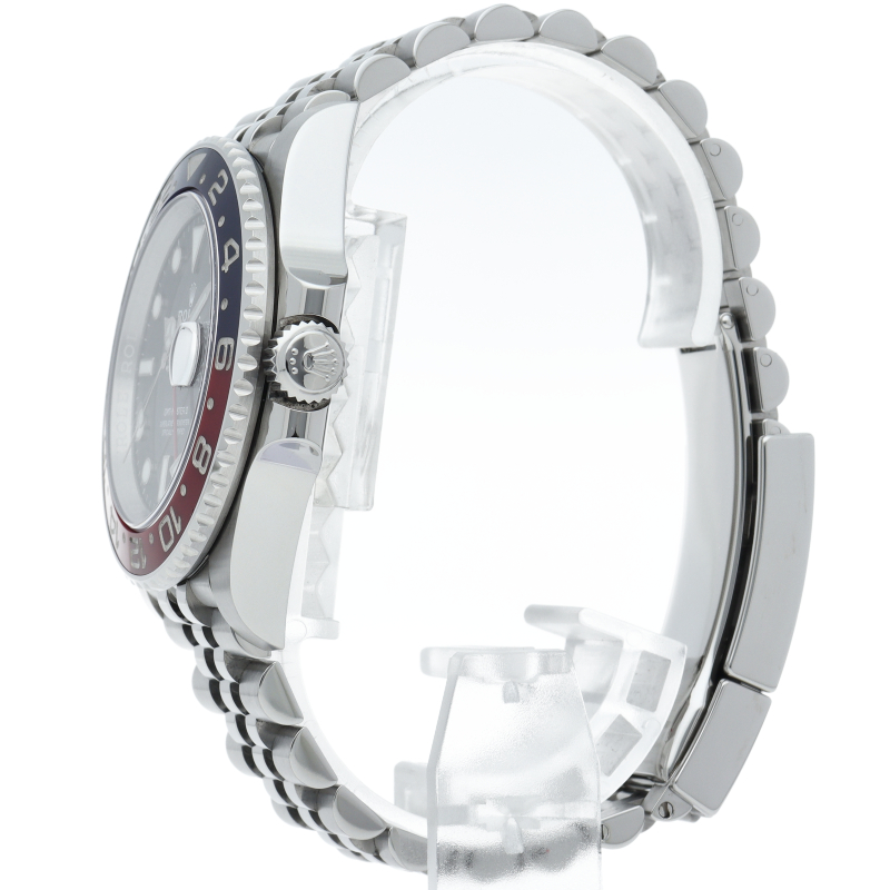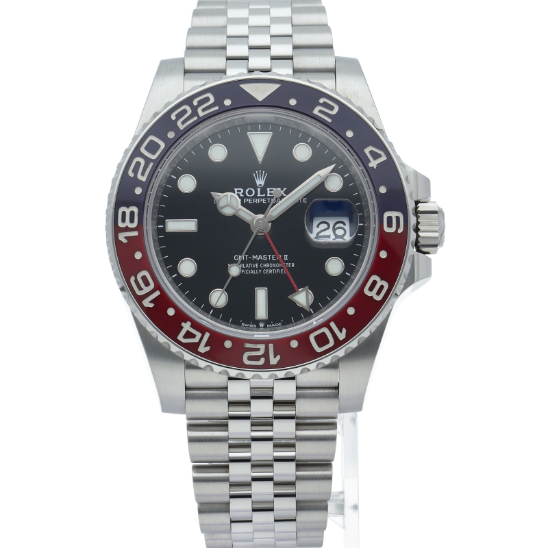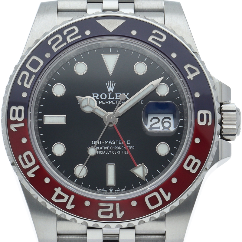 ロレックス人気モデル「GMTマスター2」のモデルチェンジした新型モデルです。セラミックベゼルにブレスやバックルも新しくなり高級感が更に増した1本です。