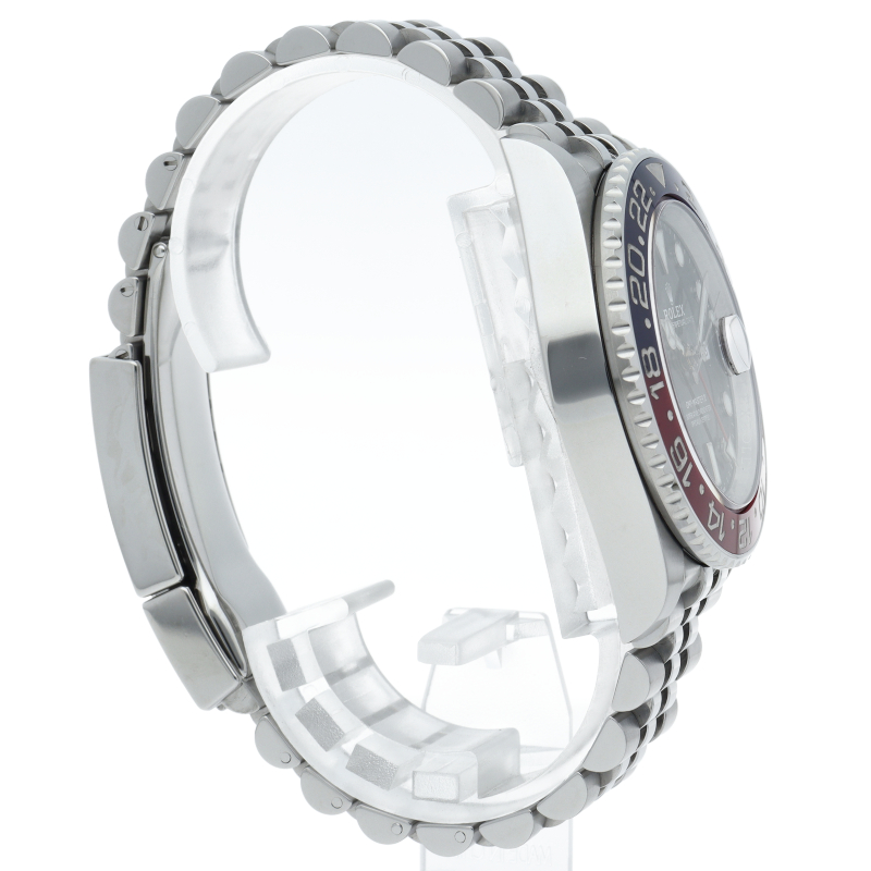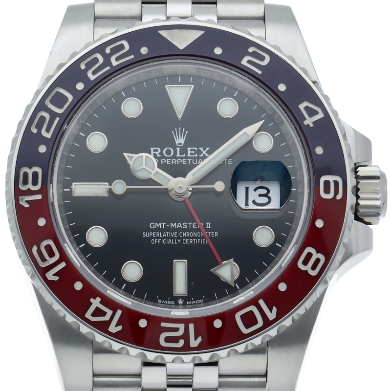ロレックス人気モデル「GMTマスター2」のモデルチェンジした新型モデルです。セラミックベゼルにブレスやバックルも新しくなり高級感が更に増した1本です。