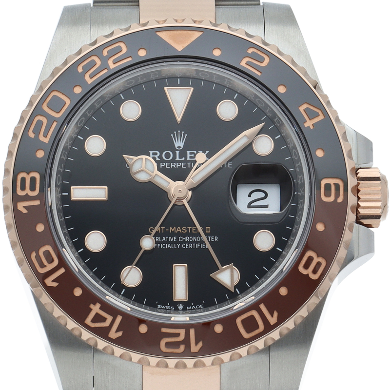 セラクロムベゼルでのGMTマスター2。ロレックスの最新ムーブメント「Cal.3285」を搭載しており、エネルギー効率が最適化されたクロナジー脱進機、テンプを衝撃から守る為の耐震装置パラフレックス ショック・アブソーバそして70時間ものロングパワーリザーブとロレックスの最新技術を駆使したムーブメントになっています。
