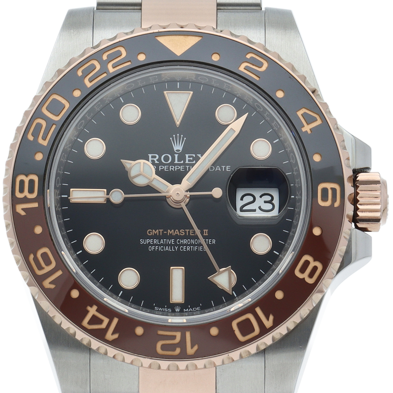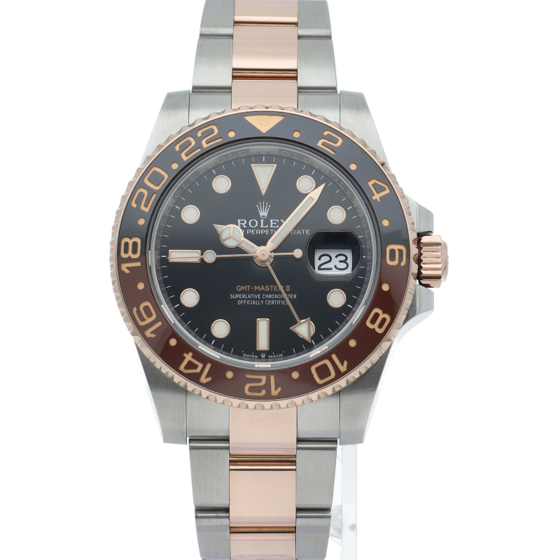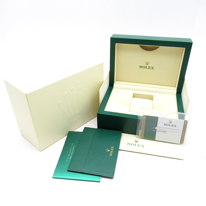 セラクロムベゼルでのGMTマスター2。ロレックスの最新ムーブメント「Cal.3285」を搭載しており、エネルギー効率が最適化されたクロナジー脱進機、テンプを衝撃から守る為の耐震装置パラフレックス ショック・アブソーバそして70時間ものロングパワーリザーブとロレックスの最新技術を駆使したムーブメントになっています。