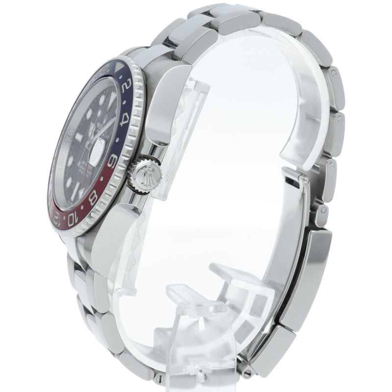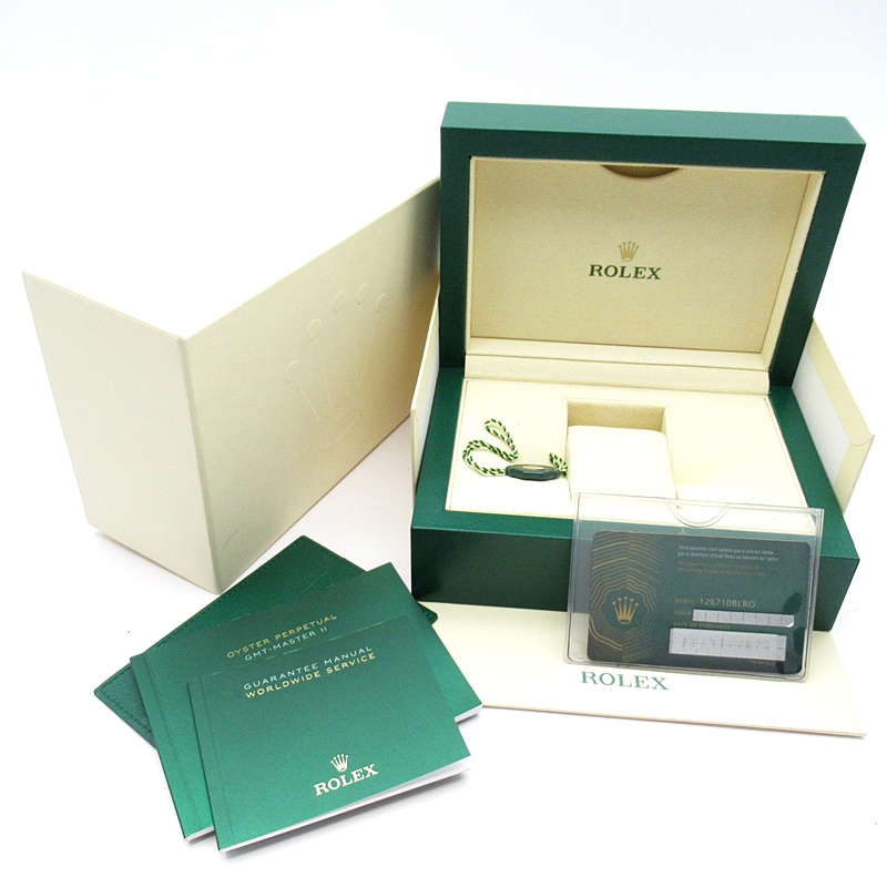 ロレックス人気モデル「GMTマスター2」のモデルチェンジした新型モデルです。セラミックベゼルにブレスやバックルも新しくなり高級感が更に増した1本です。