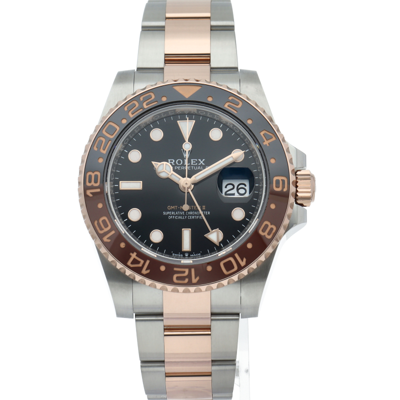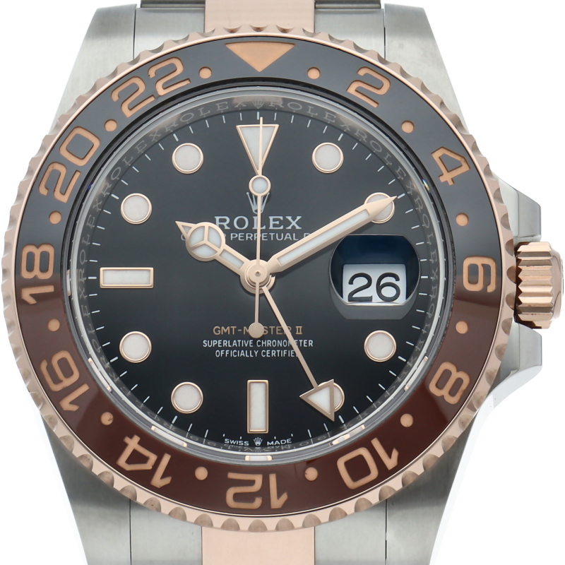 セラクロムベゼルでのGMTマスター2。ロレックスの最新ムーブメント「Cal.3285」を搭載しており、エネルギー効率が最適化されたクロナジー脱進機、テンプを衝撃から守る為の耐震装置パラフレックス ショック・アブソーバそして70時間ものロングパワーリザーブとロレックスの最新技術を駆使したムーブメントになっています。