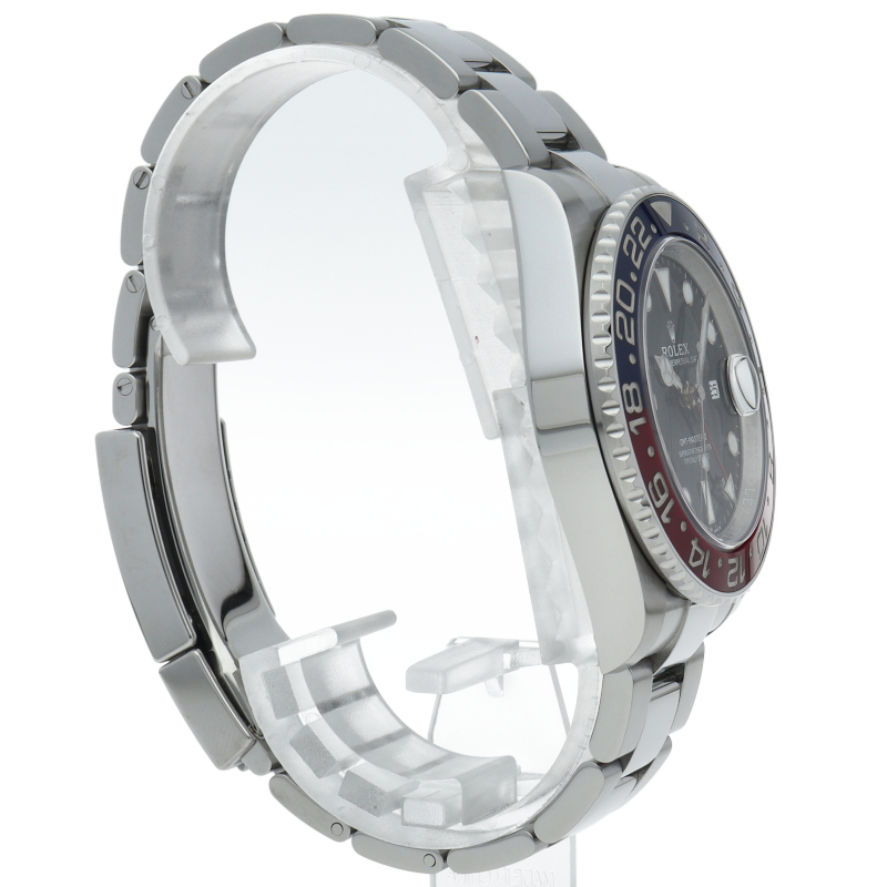 ロレックス人気モデル「GMTマスター2」のモデルチェンジした新型モデルです。セラミックベゼルにブレスやバックルも新しくなり高級感が更に増した1本です。