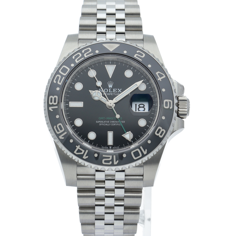 2024年に新たに加わった、グレー/ブラックベゼルにステンレスのケース/オイスターブレスレットの【126710GRNR GMTマスターII】。キャリバー3285はロレックスが特許を取得したクロナジーエスケープメントを採用し、高いエネルギー効率により70時間ものパワーリザーブを誇ります。