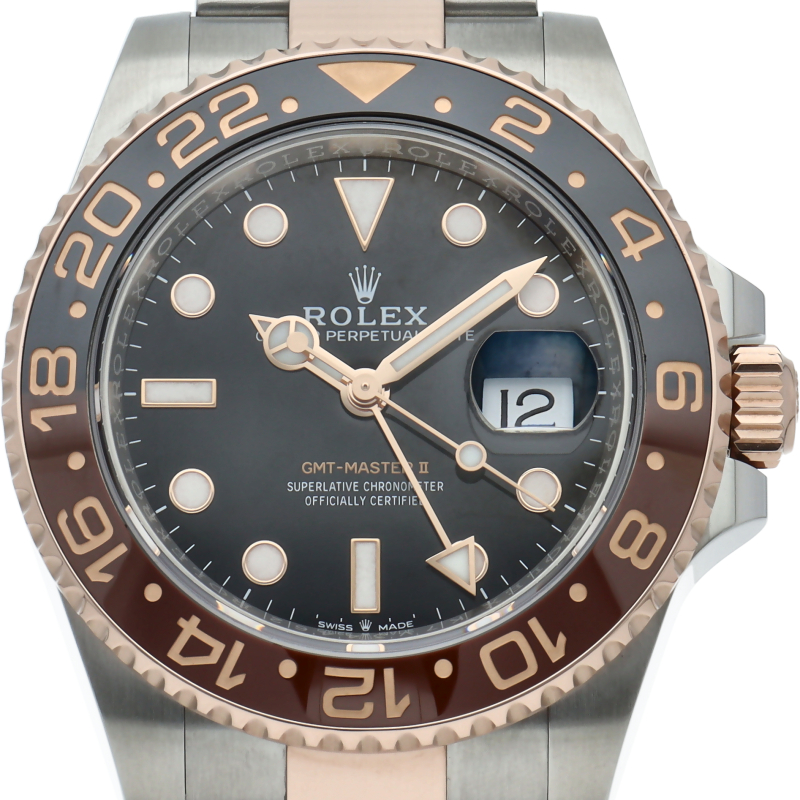 セラクロムベゼルでのGMTマスター2。ロレックスの最新ムーブメント「Cal.3285」を搭載しており、エネルギー効率が最適化されたクロナジー脱進機、テンプを衝撃から守る為の耐震装置パラフレックス ショック・アブソーバそして70時間ものロングパワーリザーブとロレックスの最新技術を駆使したムーブメントになっています。