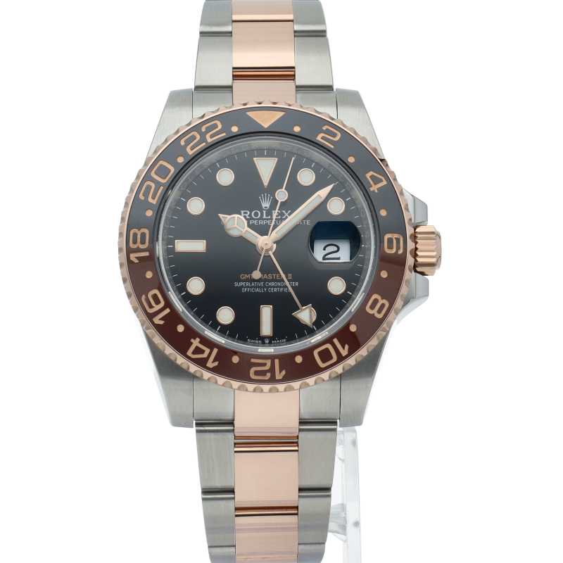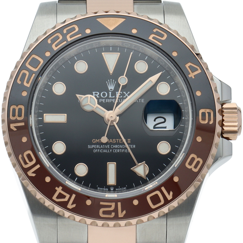 セラクロムベゼルでのGMTマスター2。ロレックスの最新ムーブメント「Cal.3285」を搭載しており、エネルギー効率が最適化されたクロナジー脱進機、テンプを衝撃から守る為の耐震装置パラフレックス ショック・アブソーバそして70時間ものロングパワーリザーブとロレックスの最新技術を駆使したムーブメントになっています。