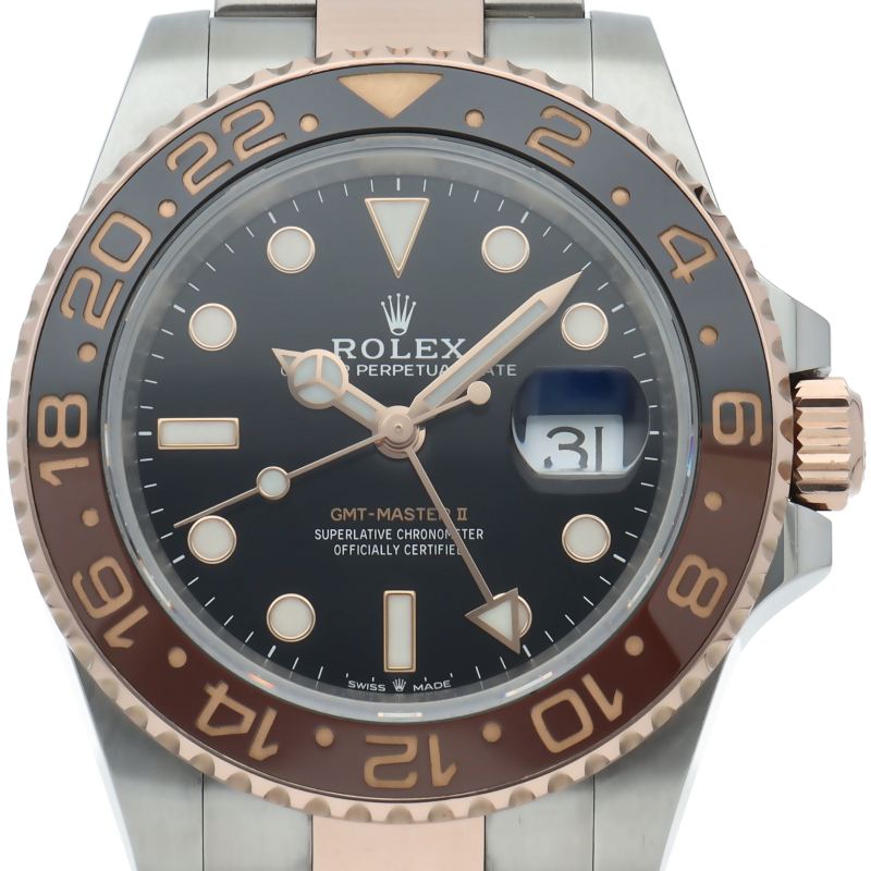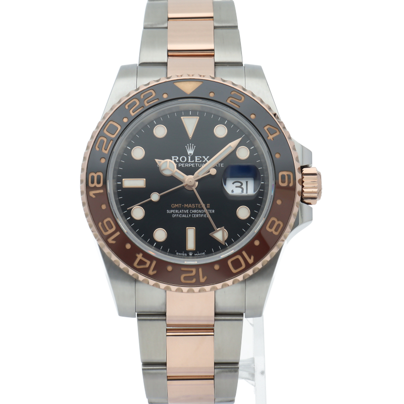 セラクロムベゼルでのGMTマスター2。ロレックスの最新ムーブメント「Cal.3285」を搭載しており、エネルギー効率が最適化されたクロナジー脱進機、テンプを衝撃から守る為の耐震装置パラフレックス ショック・アブソーバそして70時間ものロングパワーリザーブとロレックスの最新技術を駆使したムーブメントになっています。