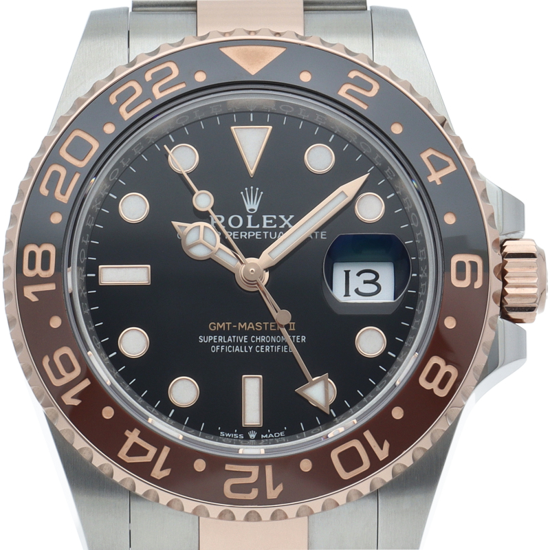 セラクロムベゼルでのGMTマスター2。ロレックスの最新ムーブメント「Cal.3285」を搭載しており、エネルギー効率が最適化されたクロナジー脱進機、テンプを衝撃から守る為の耐震装置パラフレックス ショック・アブソーバそして70時間ものロングパワーリザーブとロレックスの最新技術を駆使したムーブメントになっています。
