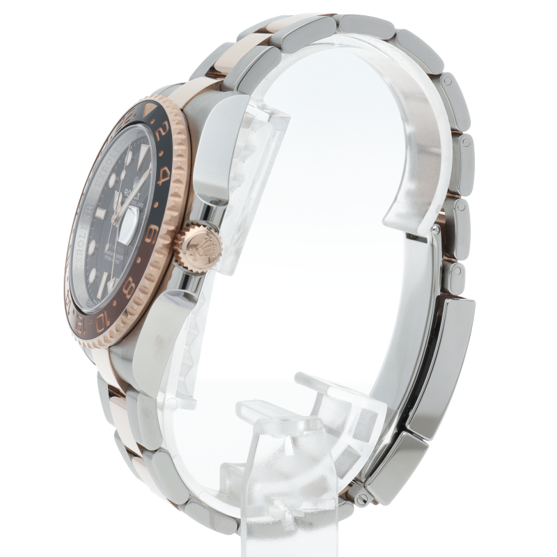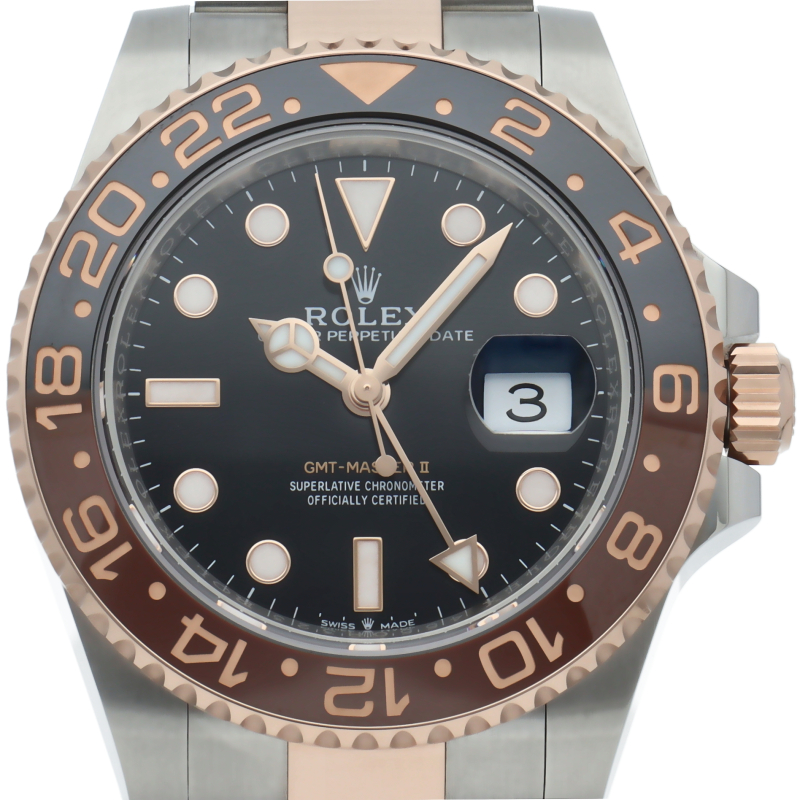セラクロムベゼルでのGMTマスター2。ロレックスの最新ムーブメント「Cal.3285」を搭載しており、エネルギー効率が最適化されたクロナジー脱進機、テンプを衝撃から守る為の耐震装置パラフレックス ショック・アブソーバそして70時間ものロングパワーリザーブとロレックスの最新技術を駆使したムーブメントになっています。