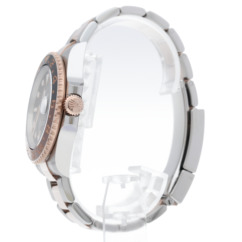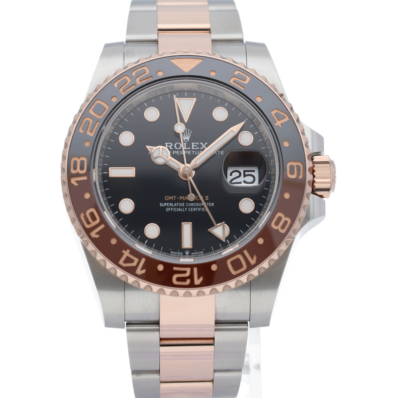 セラクロムベゼルでのGMTマスター2。ロレックスの最新ムーブメント「Cal.3285」を搭載しており、エネルギー効率が最適化されたクロナジー脱進機、テンプを衝撃から守る為の耐震装置パラフレックス ショック・アブソーバそして70時間ものロングパワーリザーブとロレックスの最新技術を駆使したムーブメントになっています。