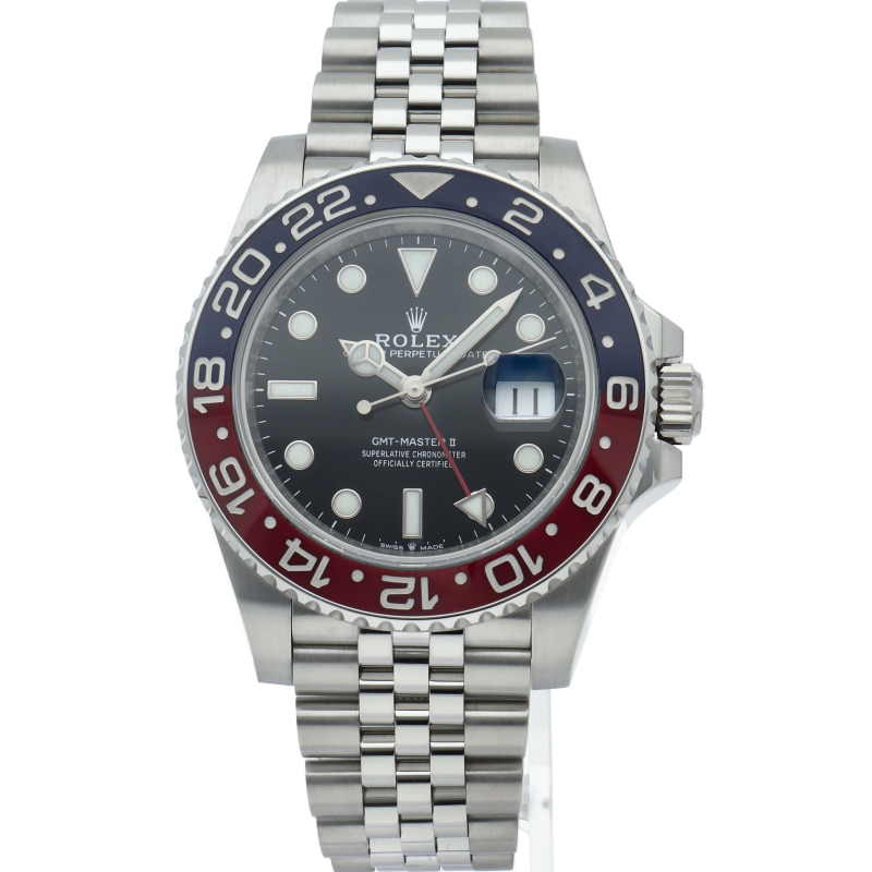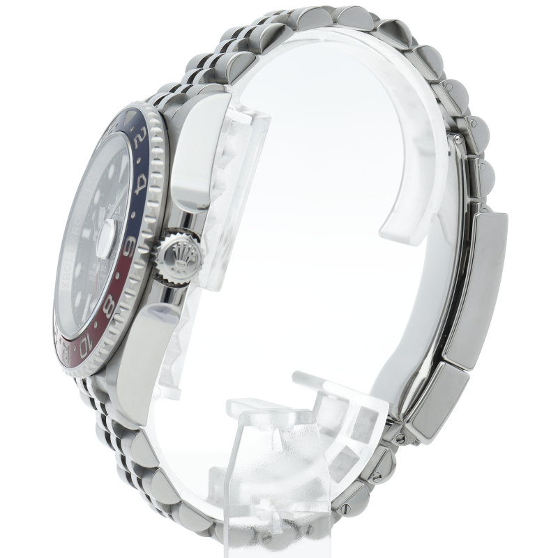 ロレックス人気モデル「GMTマスター2」のモデルチェンジした新型モデルです。セラミックベゼルにブレスやバックルも新しくなり高級感が更に増した1本です。