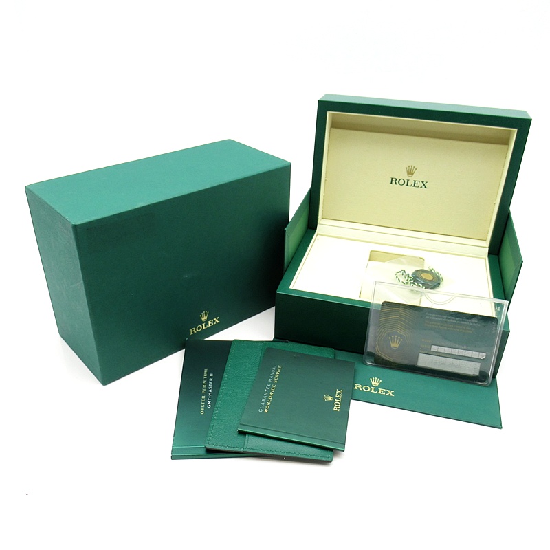 セラクロムベゼルでのGMTマスター2。ロレックスの最新ムーブメント「Cal.3285」を搭載しており、エネルギー効率が最適化されたクロナジー脱進機、テンプを衝撃から守る為の耐震装置パラフレックス ショック・アブソーバそして70時間ものロングパワーリザーブとロレックスの最新技術を駆使したムーブメントになっています。
