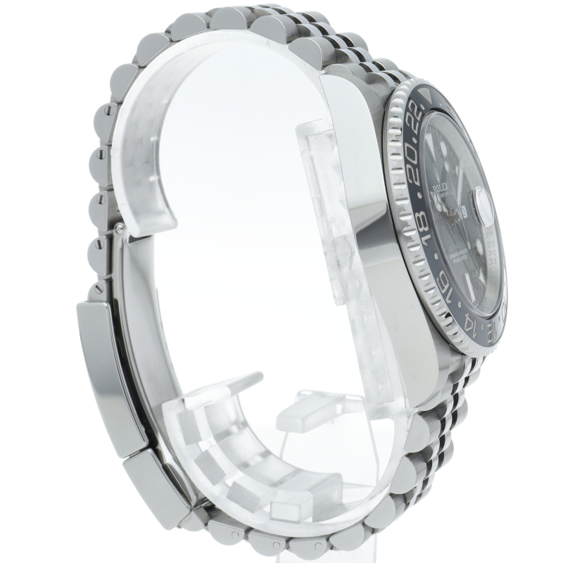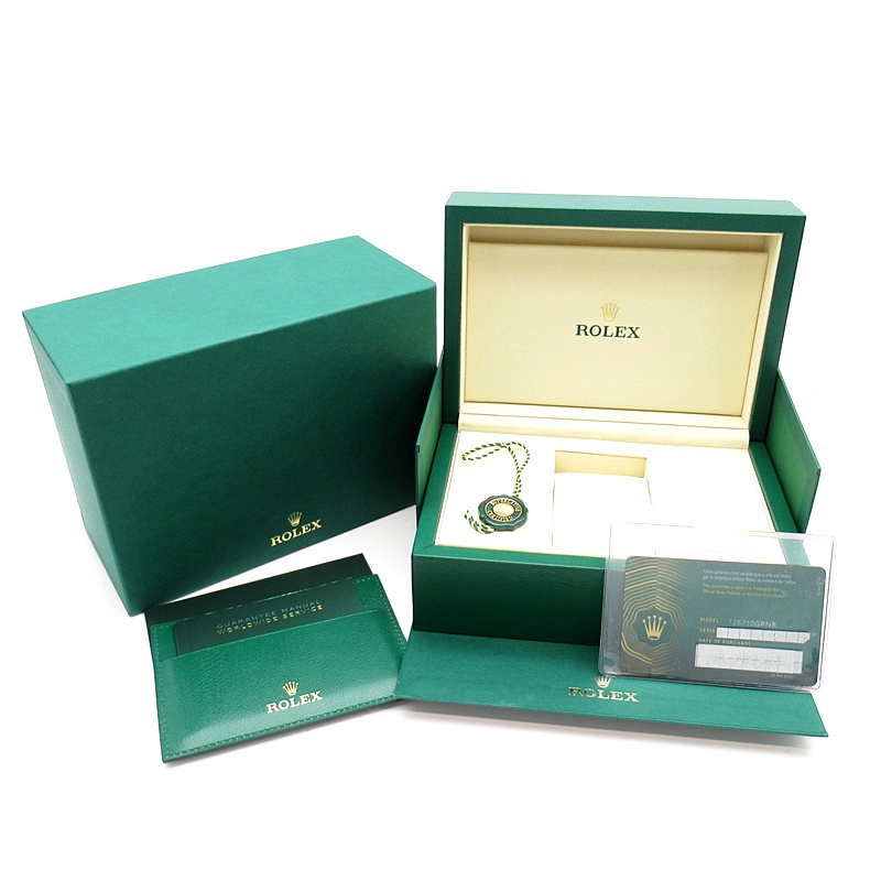 2024年に新たに加わった、グレー/ブラックベゼルにステンレスのケース/オイスターブレスレットの【126710GRNR GMTマスターII】。キャリバー3285はロレックスが特許を取得したクロナジーエスケープメントを採用し、高いエネルギー効率により70時間ものパワーリザーブを誇ります。