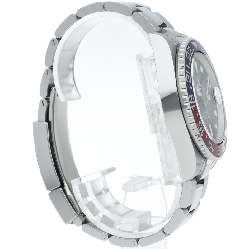 ロレックス人気モデル「GMTマスター2」のモデルチェンジした新型モデルです。セラミックベゼルにブレスやバックルも新しくなり高級感が更に増した1本です。