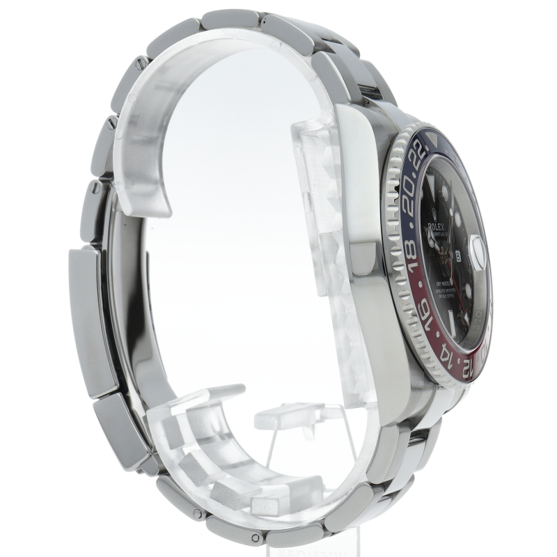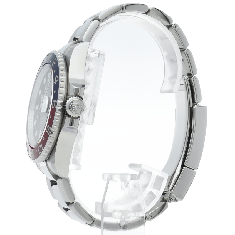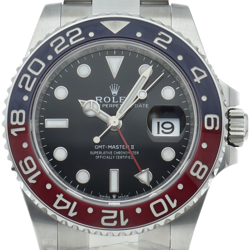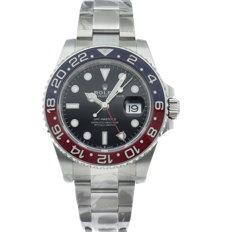 ロレックス人気モデル「GMTマスター2」のモデルチェンジした新型モデルです。セラミックベゼルにブレスやバックルも新しくなり高級感が更に増した1本です。