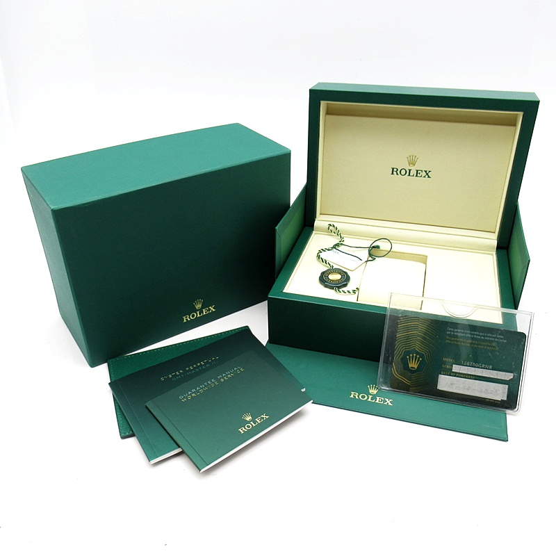 2024年に新たに加わった、グレー/ブラックベゼルにステンレスのケース/オイスターブレスレットの【126710GRNR GMTマスターII】。キャリバー3285はロレックスが特許を取得したクロナジーエスケープメントを採用し、高いエネルギー効率により70時間ものパワーリザーブを誇ります。