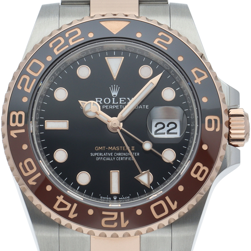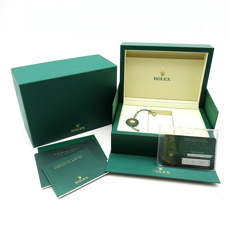 セラクロムベゼルでのGMTマスター2。ロレックスの最新ムーブメント「Cal.3285」を搭載しており、エネルギー効率が最適化されたクロナジー脱進機、テンプを衝撃から守る為の耐震装置パラフレックス ショック・アブソーバそして70時間ものロングパワーリザーブとロレックスの最新技術を駆使したムーブメントになっています。