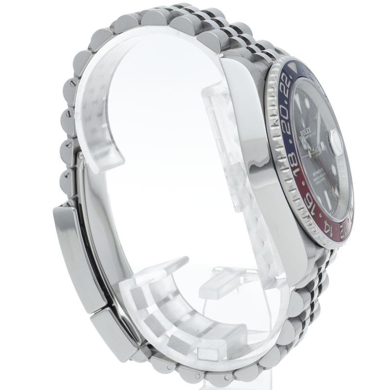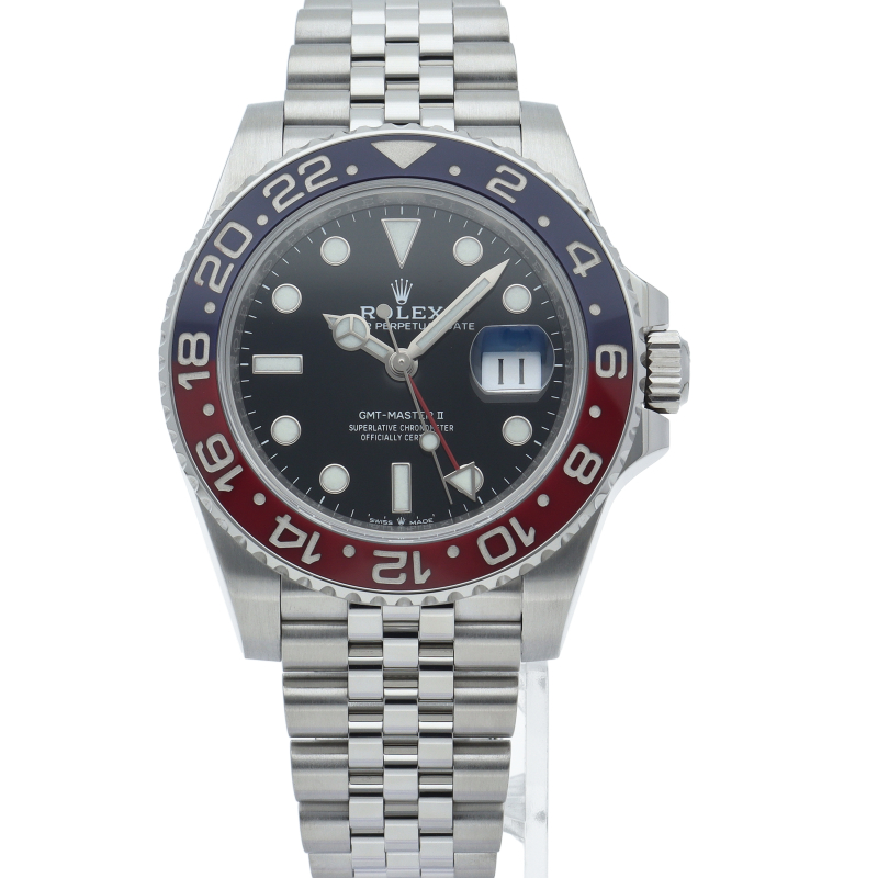 ロレックス人気モデル「GMTマスター2」のモデルチェンジした新型モデルです。セラミックベゼルにブレスやバックルも新しくなり高級感が更に増した1本です。