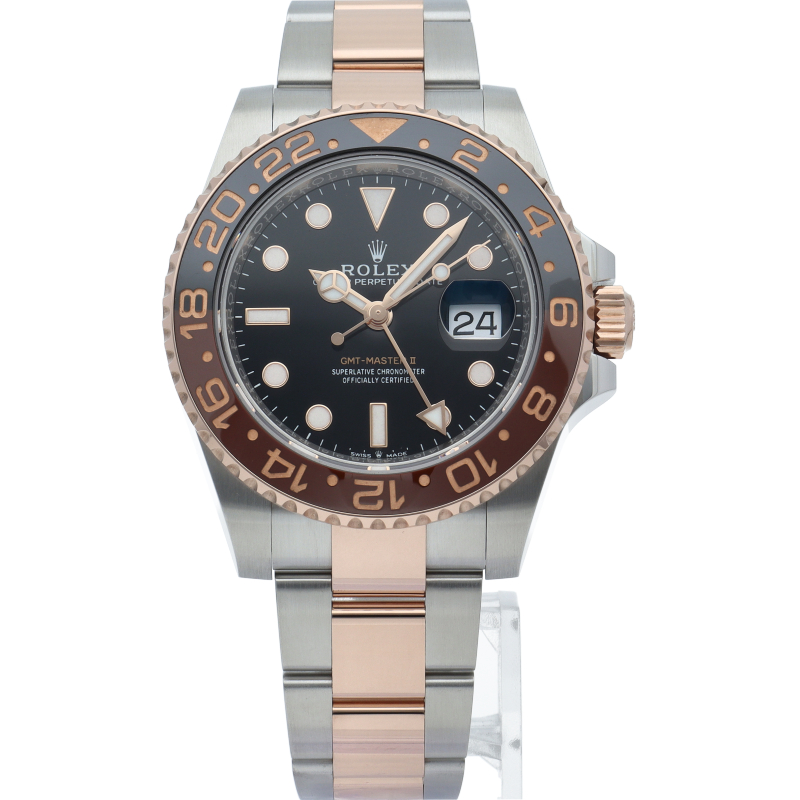 セラクロムベゼルでのGMTマスター2。ロレックスの最新ムーブメント「Cal.3285」を搭載しており、エネルギー効率が最適化されたクロナジー脱進機、テンプを衝撃から守る為の耐震装置パラフレックス ショック・アブソーバそして70時間ものロングパワーリザーブとロレックスの最新技術を駆使したムーブメントになっています。