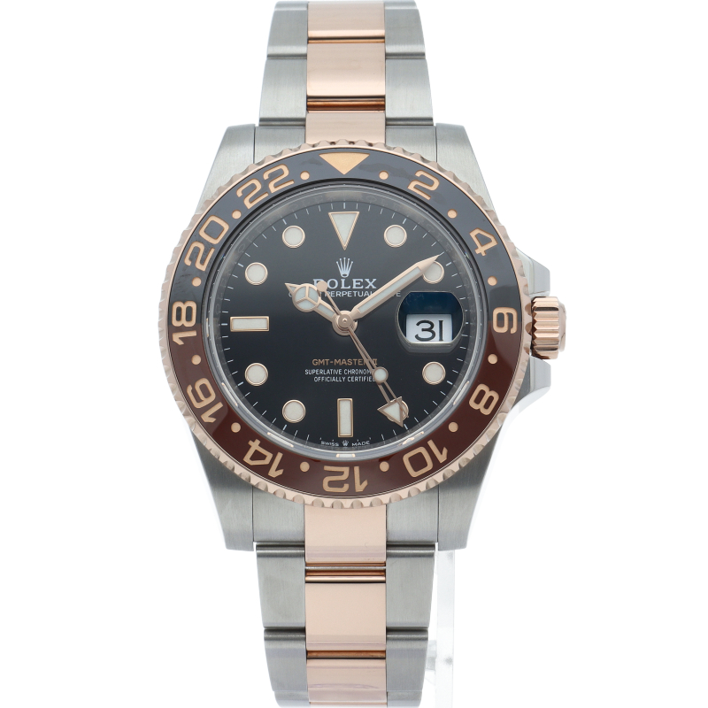 セラクロムベゼルでのGMTマスター2。ロレックスの最新ムーブメント「Cal.3285」を搭載しており、エネルギー効率が最適化されたクロナジー脱進機、テンプを衝撃から守る為の耐震装置パラフレックス ショック・アブソーバそして70時間ものロングパワーリザーブとロレックスの最新技術を駆使したムーブメントになっています。