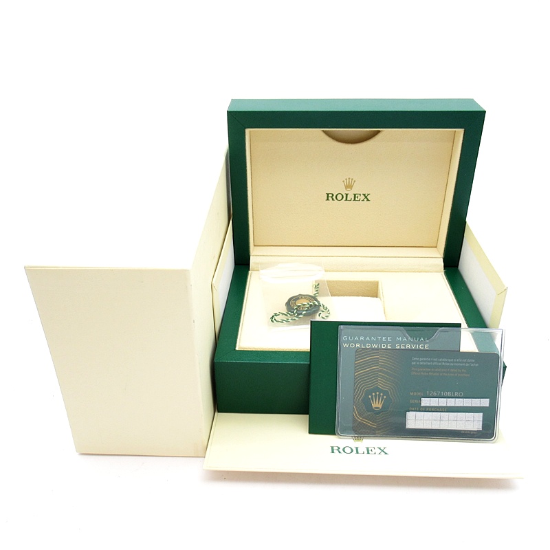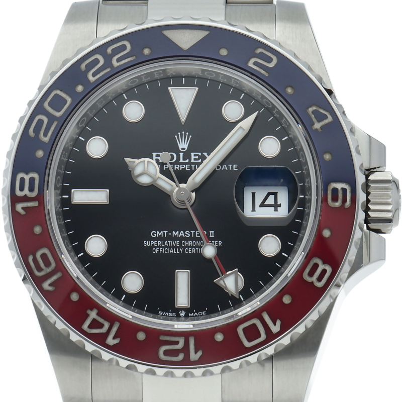 ロレックス人気モデル「GMTマスター2」のモデルチェンジした新型モデルです。セラミックベゼルにブレスやバックルも新しくなり高級感が更に増した1本です。