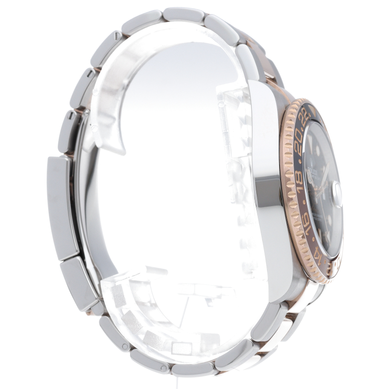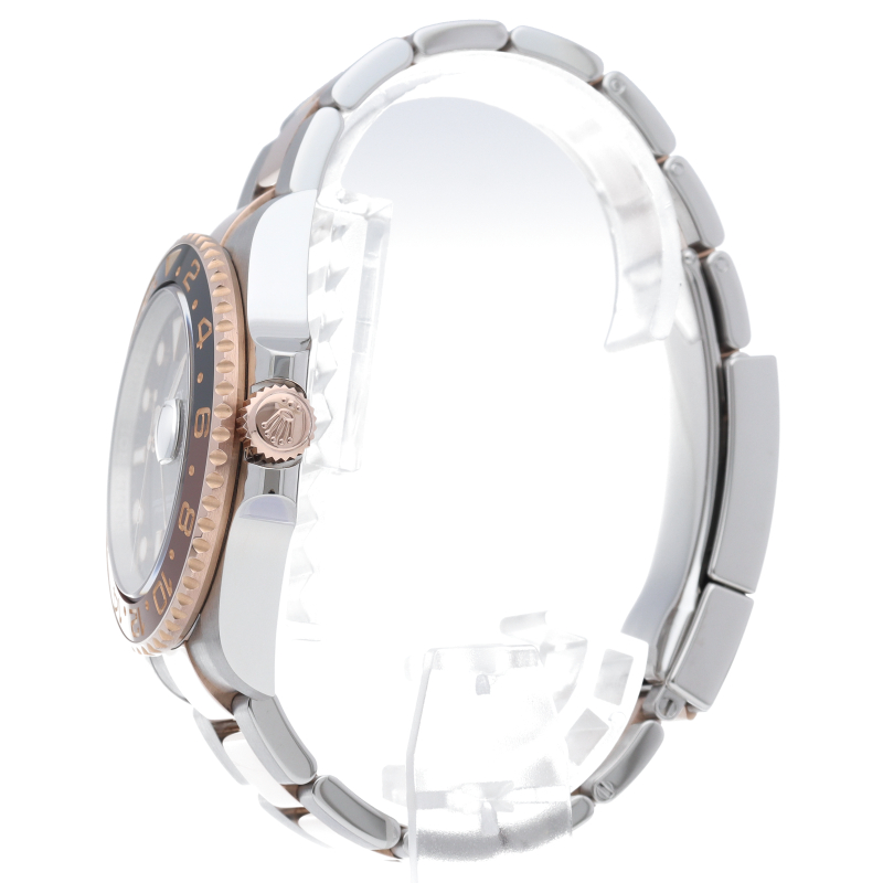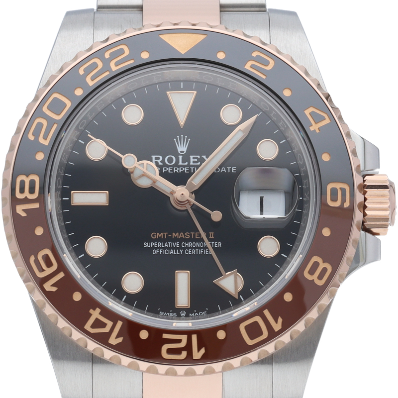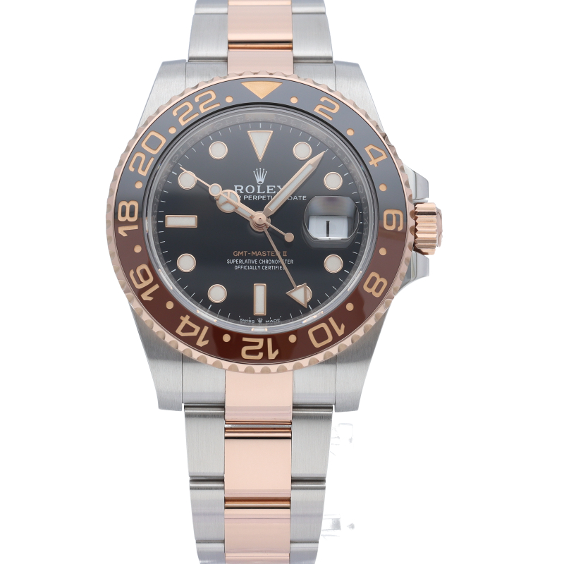 セラクロムベゼルでのGMTマスター2。ロレックスの最新ムーブメント「Cal.3285」を搭載しており、エネルギー効率が最適化されたクロナジー脱進機、テンプを衝撃から守る為の耐震装置パラフレックス ショック・アブソーバそして70時間ものロングパワーリザーブとロレックスの最新技術を駆使したムーブメントになっています。