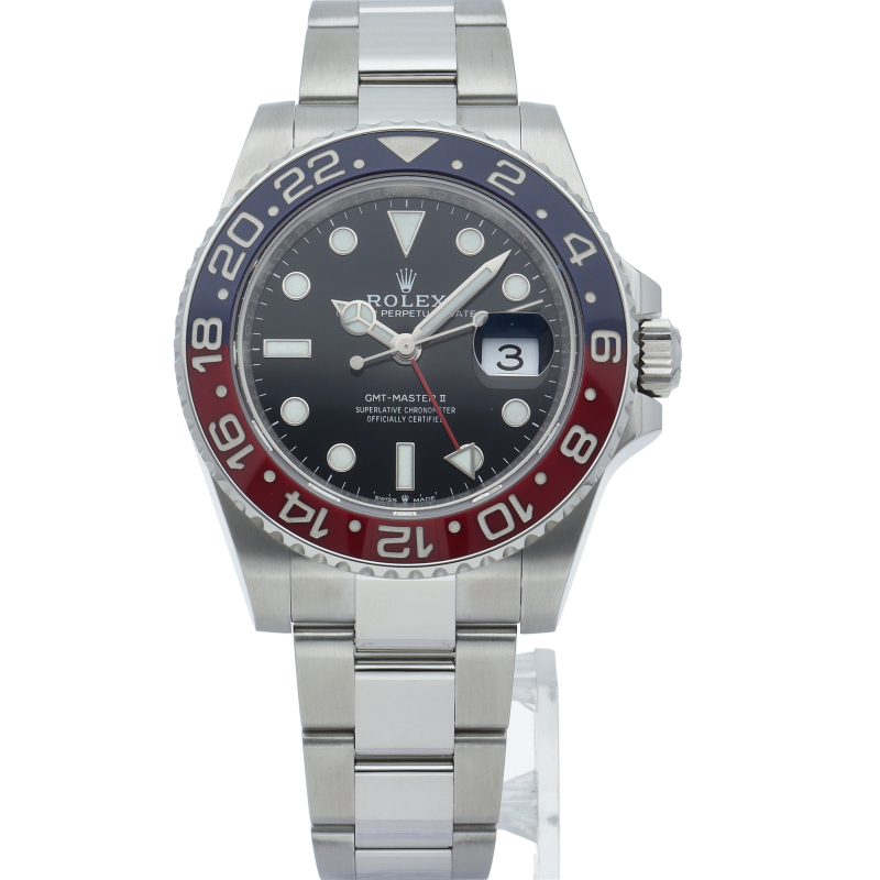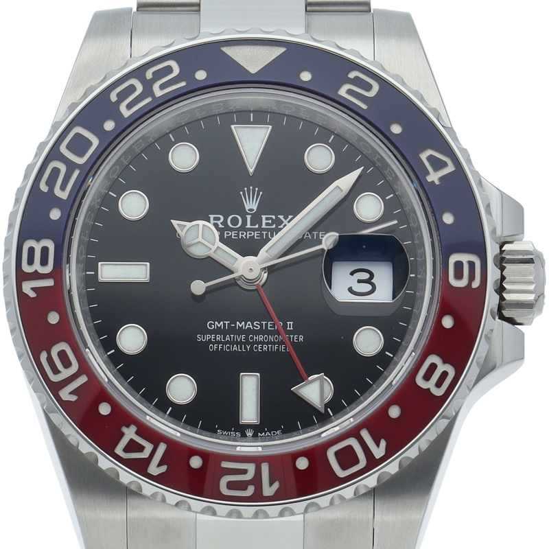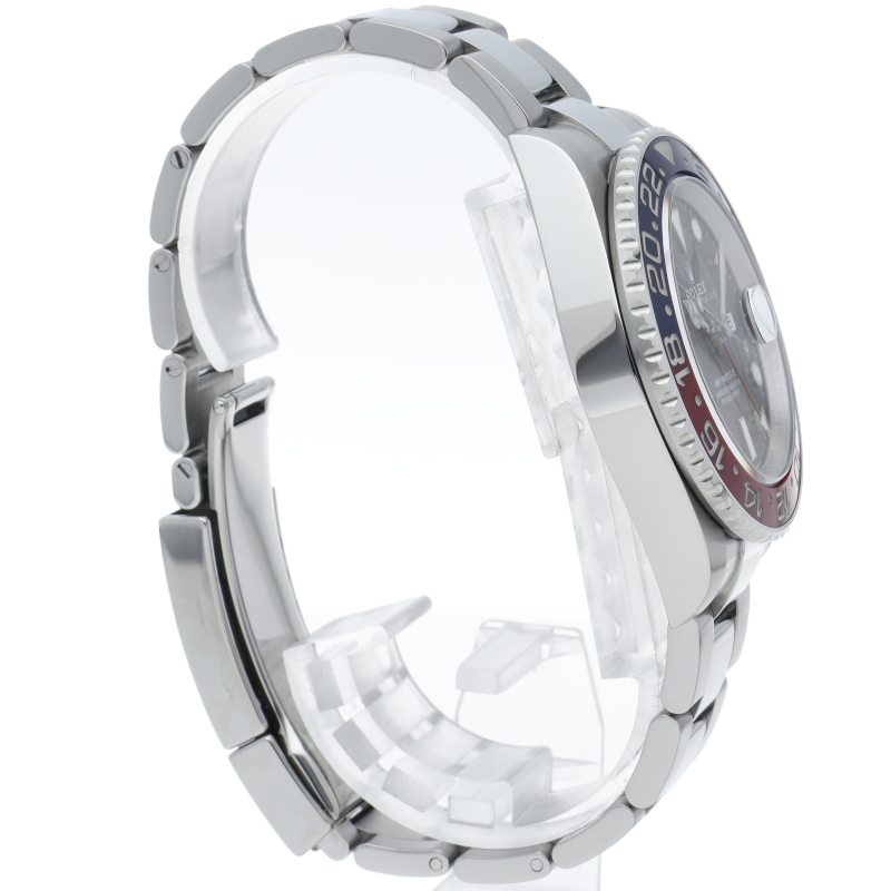 ロレックス人気モデル「GMTマスター2」のモデルチェンジした新型モデルです。セラミックベゼルにブレスやバックルも新しくなり高級感が更に増した1本です。